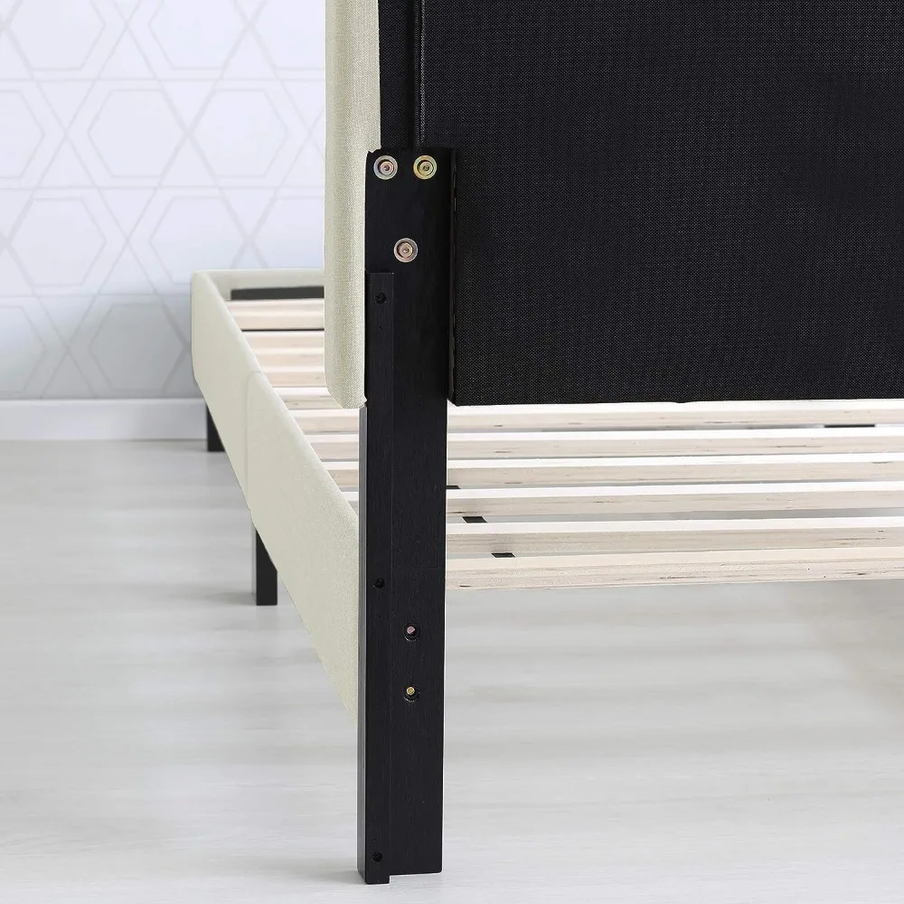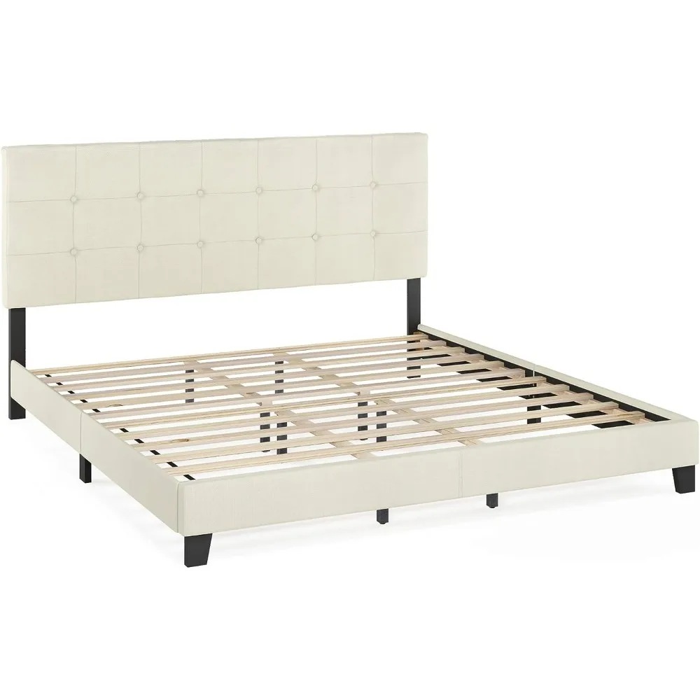 King Size Laval Button Tufted Upholstered Platform Bed Frame Linen