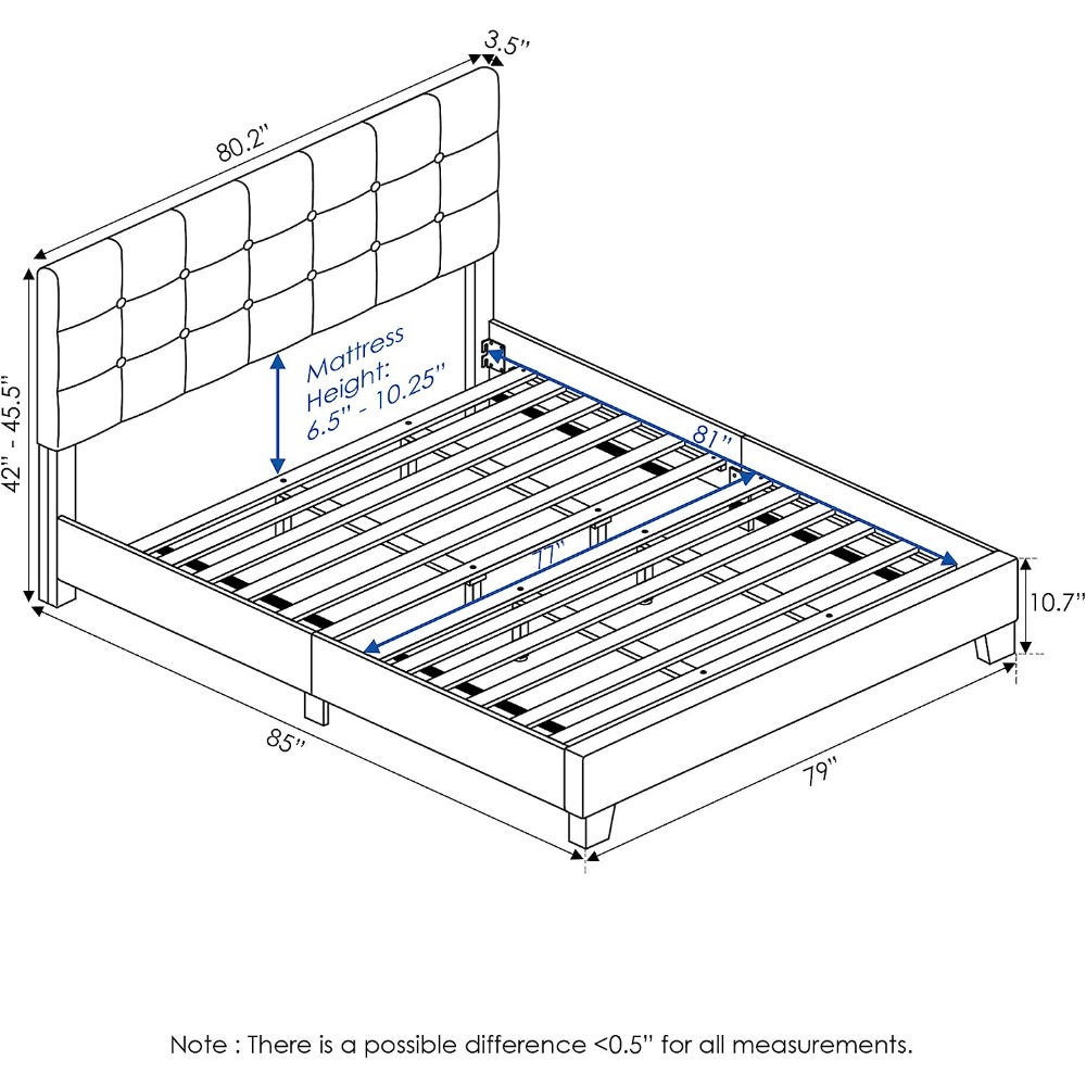 Modern upholstery bed frame with button tufted design headboard.Manufactured from composite wood and nylon fabric, CARB P2 and 100% polyester