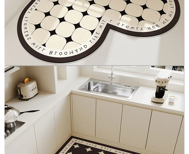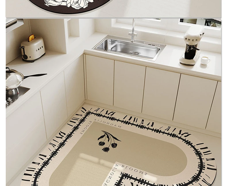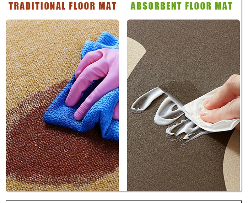 The floor mat you are looking at now is professionally used in the kitchen. Its fabric is leather PVC. Its main feature is waterproof, oil-proof and non-slip. At the same time, its soft and resilient fabric can also protect the tableware from being broken due to falling.