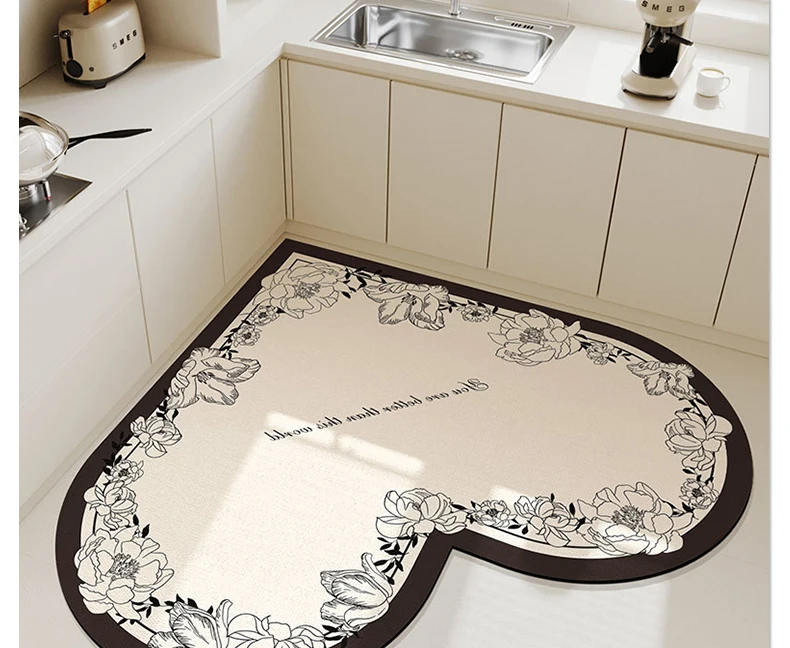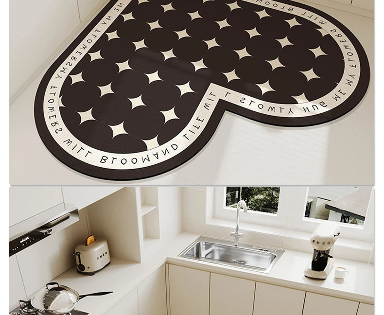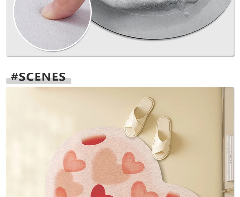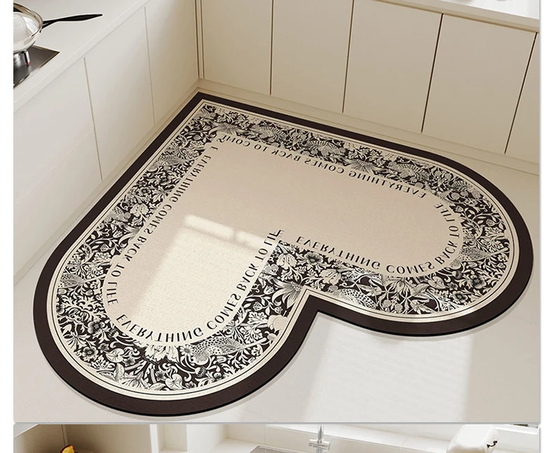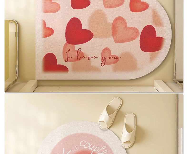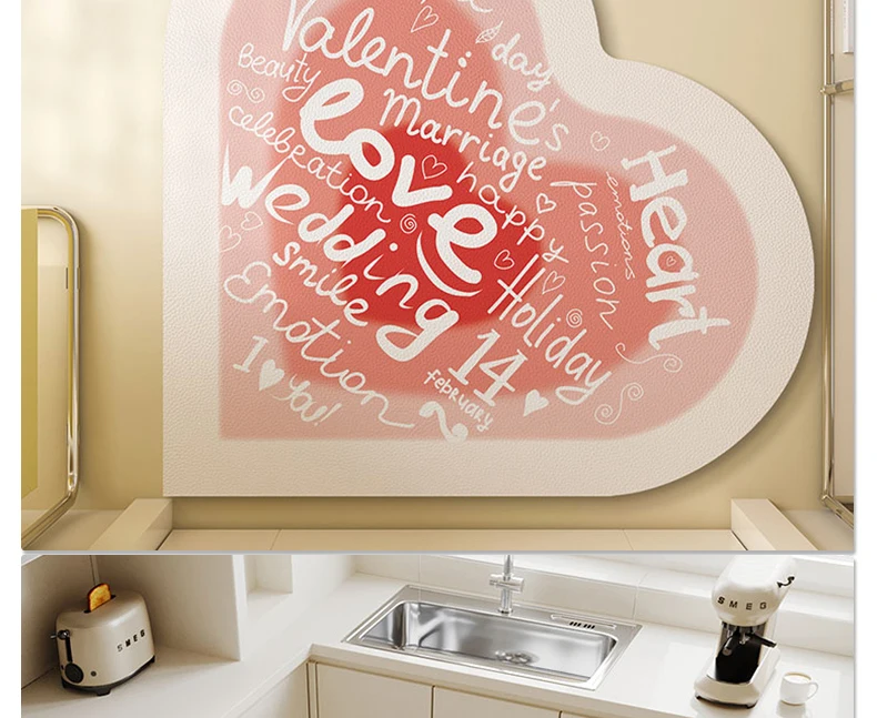 Kitchen Absorbent Pvc Floor Mats Heart Shape Carpet Non-Slip Bath Rug Pink Valentine's Day Rug Absorbs Water Diatom Mud Pad