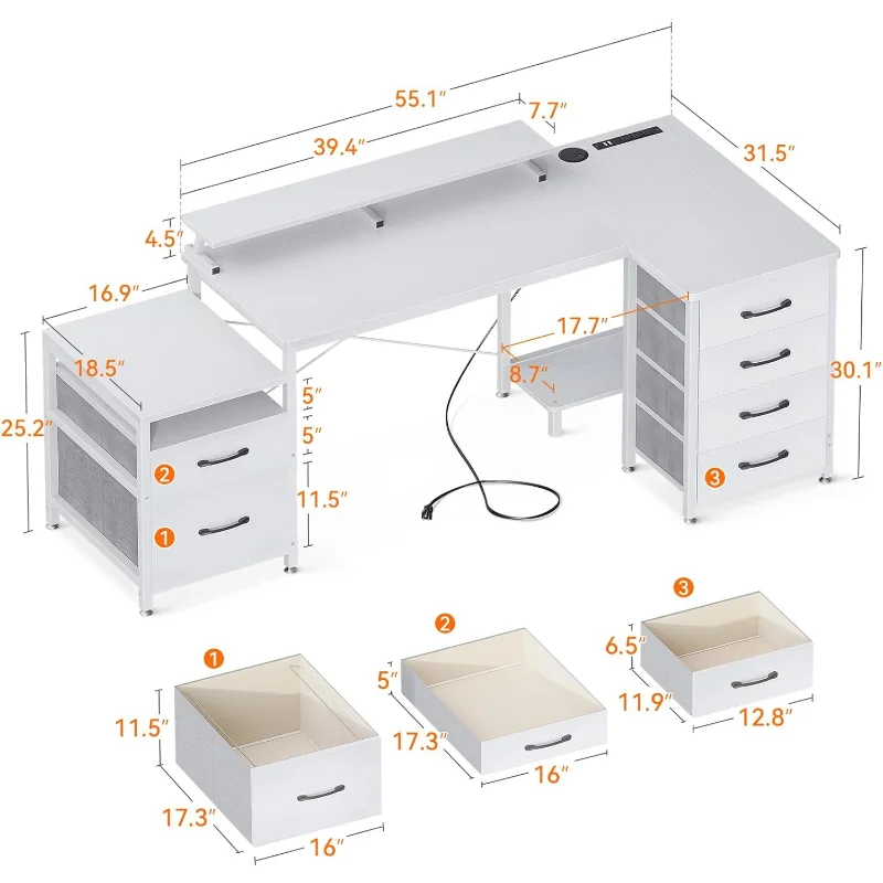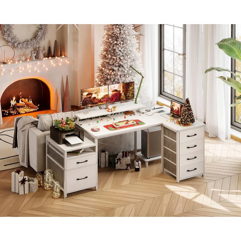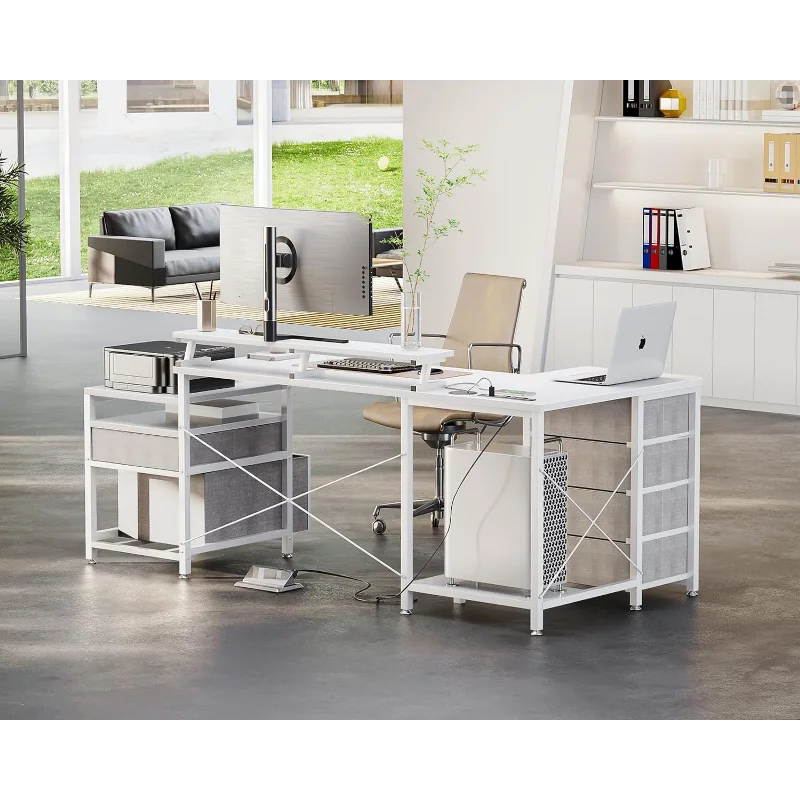 - 【L-Shaped Corner Desk & Health-friendly Monitor Stand Design】The L-shaped modern office desk fits perfectly in all corners of your room, and it makes the most of limited space. Our monitor stand elevates your line of sight, allowing you to maintain proper sitting posture and protect your cervical and spinal health, while also creating additional storage space on the desktop.