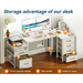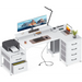 KKL L Shaped Computer Desk with File Drawers & 3 Power Outlets & 2 USB Ports, 72 Inch Home Office Desk with Printer Cabinet & Mo