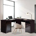 L-shaped table, home office corner computer desk with storage cabinet, dark brown