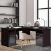 GOOD & GRACIOUS Furniture are designed for bringing the most convenience to your house, simplifying your life. Provides more storage space for your books, magazines, and other sundries. Vintage wood finish exudes a touch of classic flair, brings a breath of fresh air into your home. Specifications: - Material: Wood & Metal - Color: Dark Brown - Product Size: 58.75"D x 58.75"W x 30.25"H - Weight: 117 lb Package Contents: - 1 x Office Desk - 1 x Instructions - 1 x Hardware Pack Notes: - Avoid exposure to direct sunlight and damp area. - Keep the product away from sharp objects.