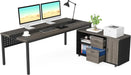 - 【Simple Office Furniture Combo】 70.8 inches office computer desk & 47 inches filling cabinet set. Two separate pieces design allows you to use them independently and install on the left or right side as you like. This executive desk is great as a business furniture or home office computer writing desk. The business desk offers ample space for you to stretch your feet. Rolling on six wheels, our lateral file cabinet can be moved and adjusted in position.
