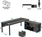 Large Executive Office Desk and 47" Lateral File Cabinet Combo,L-Shaped Desk 2 Piece Business Furniture with Drawers and Shelves