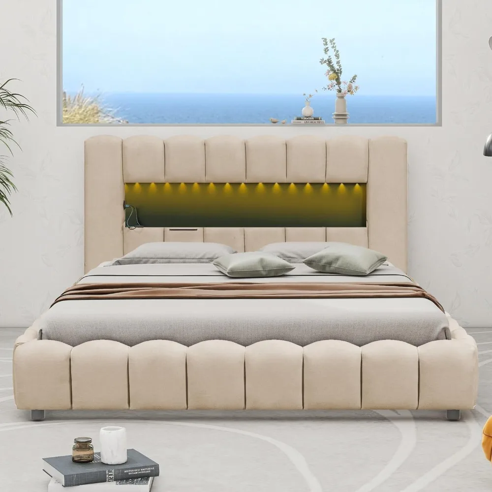 - [LED Headboard] This upholstered platform bed features built-in lighting on the headboard for a bright and futuristic feel in your bedroom.