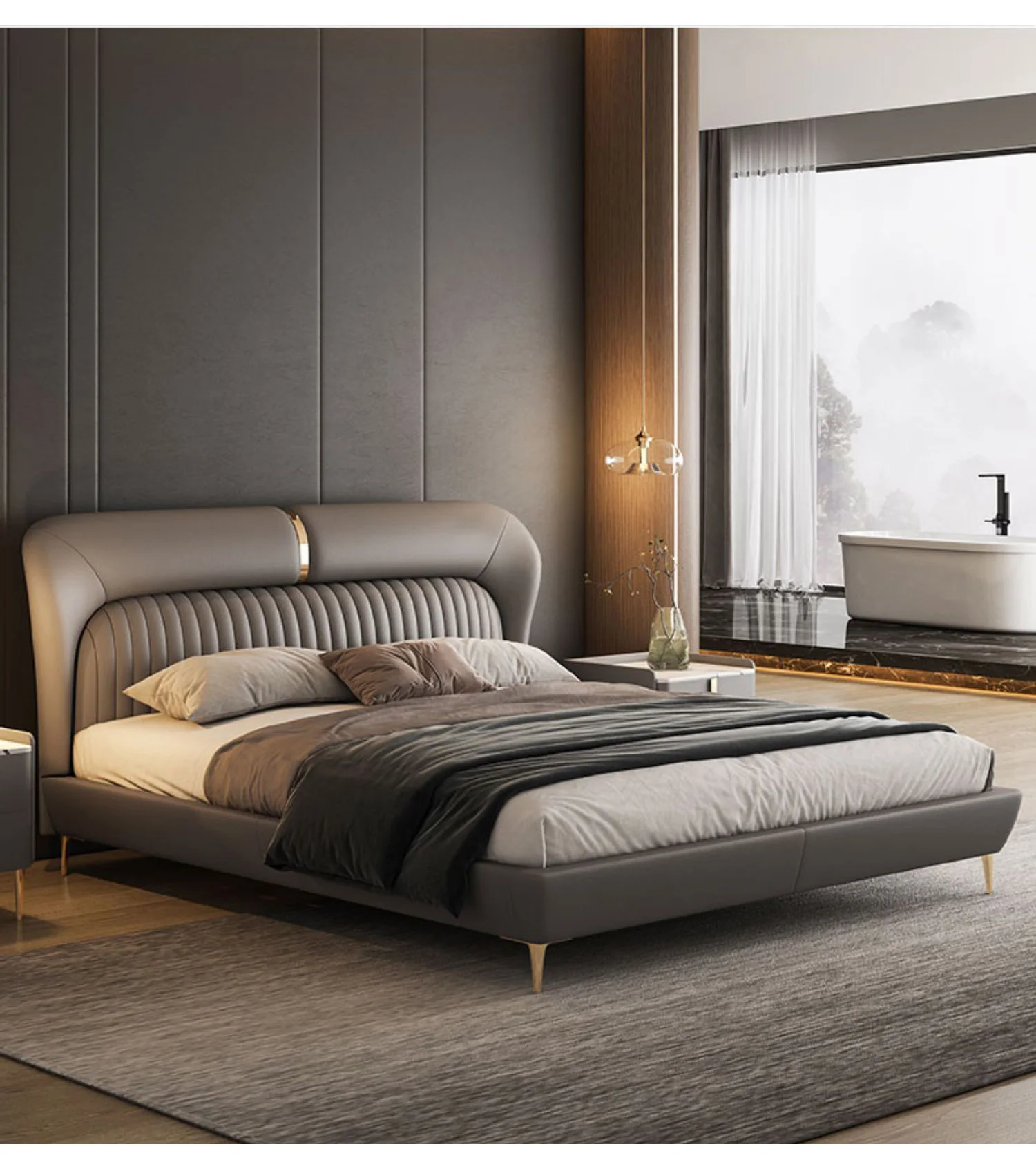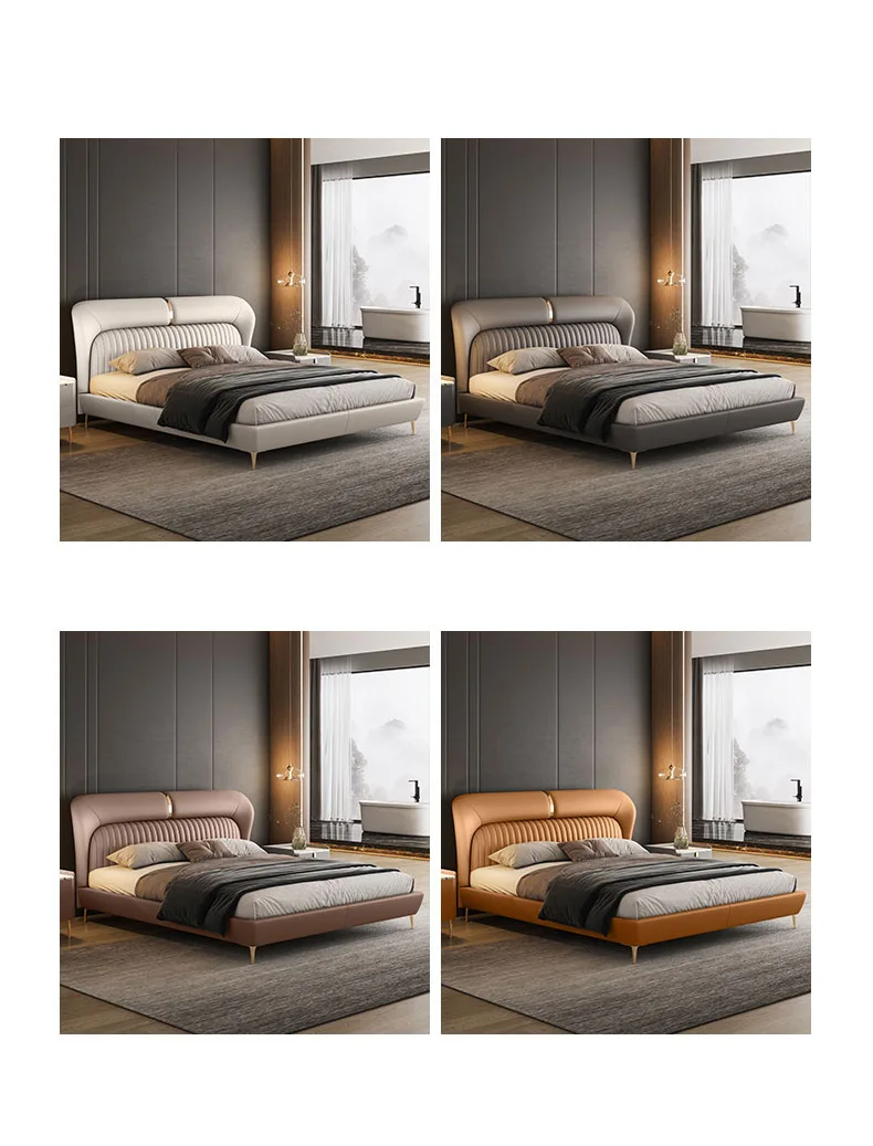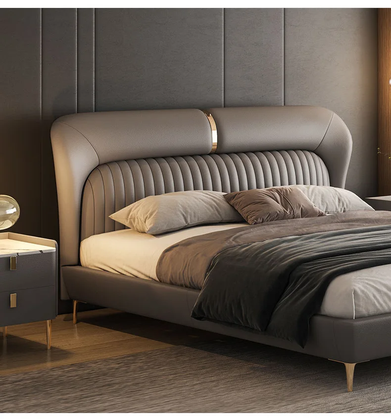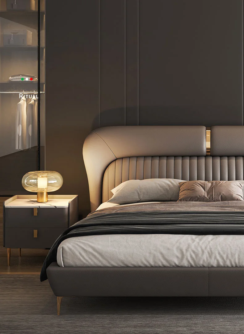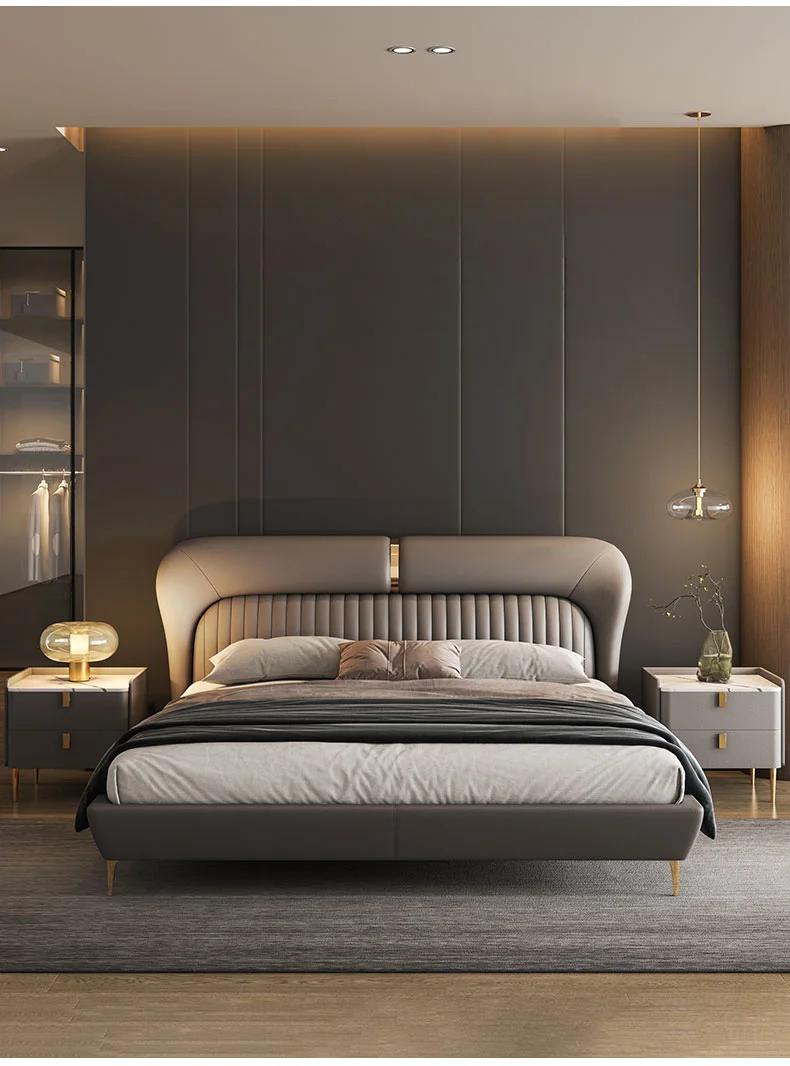 Leather Bed Light Luxury Modern Minimalist Master Bedroom Double Upholstered Bed Minimalist Design High-End Wedding Bed