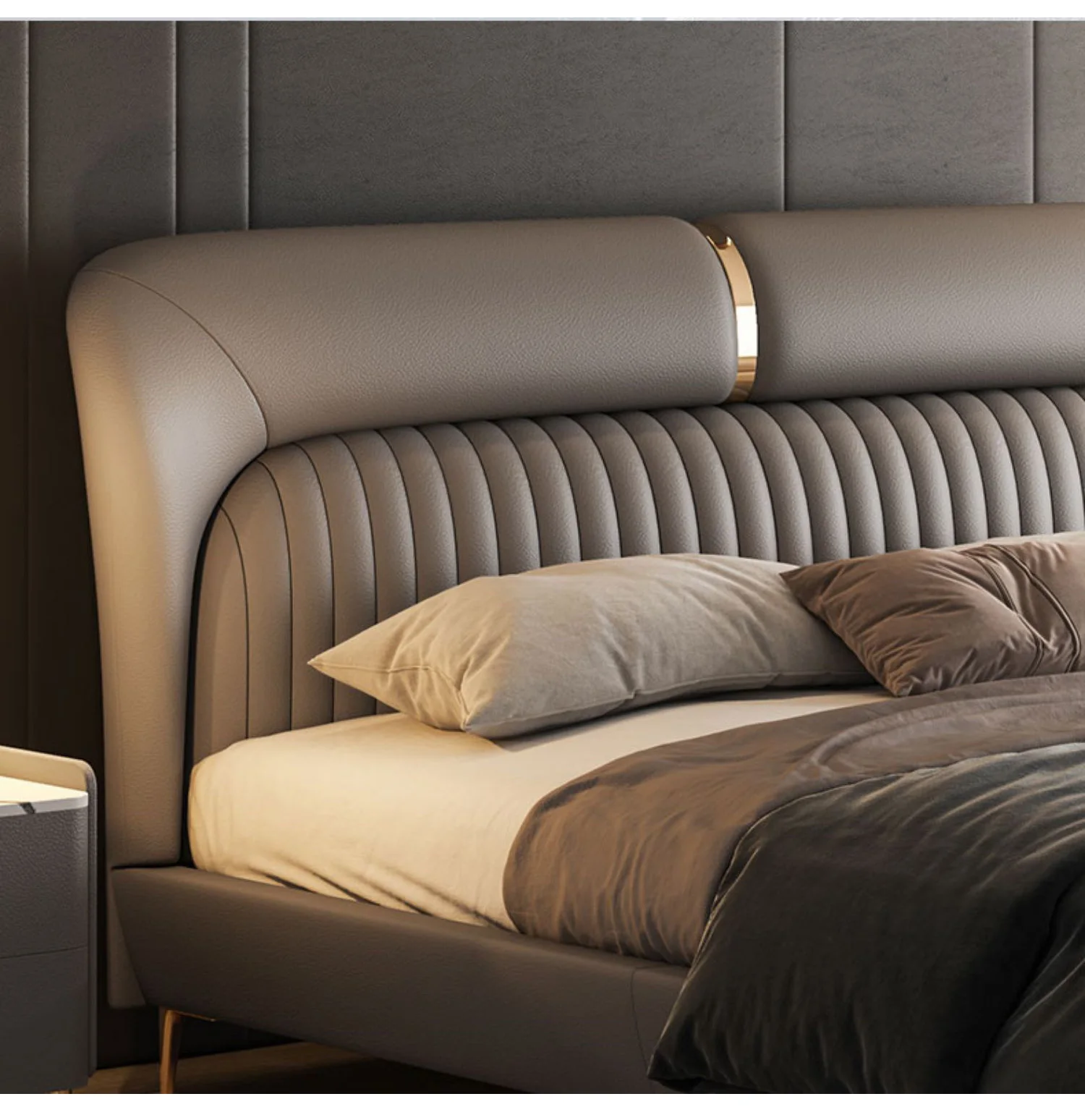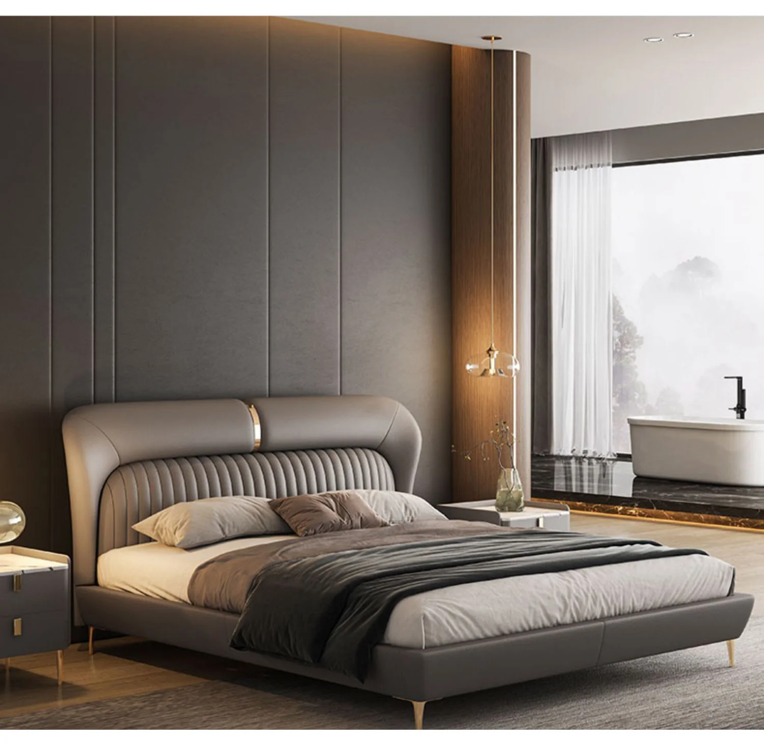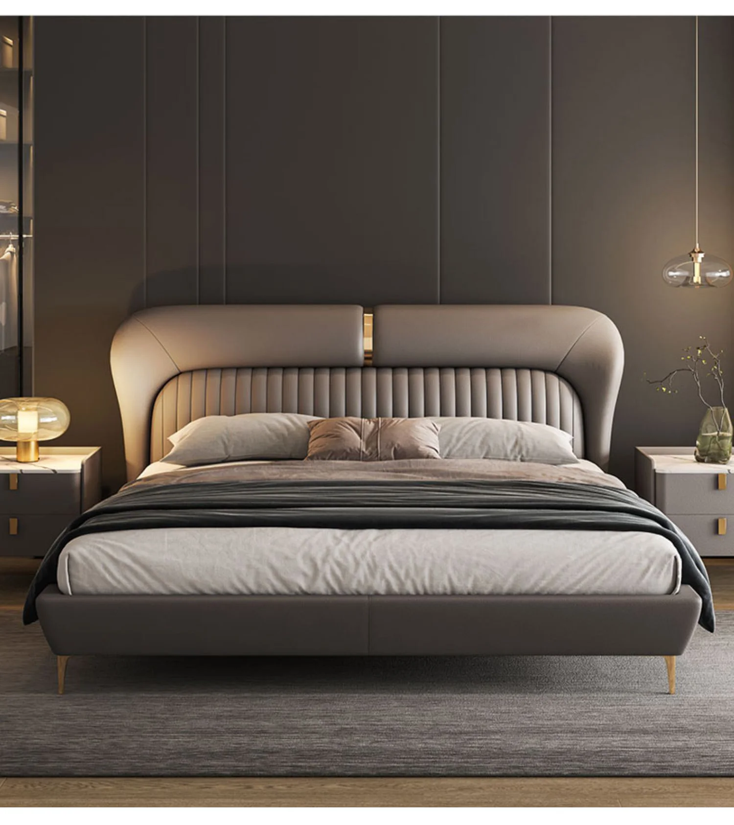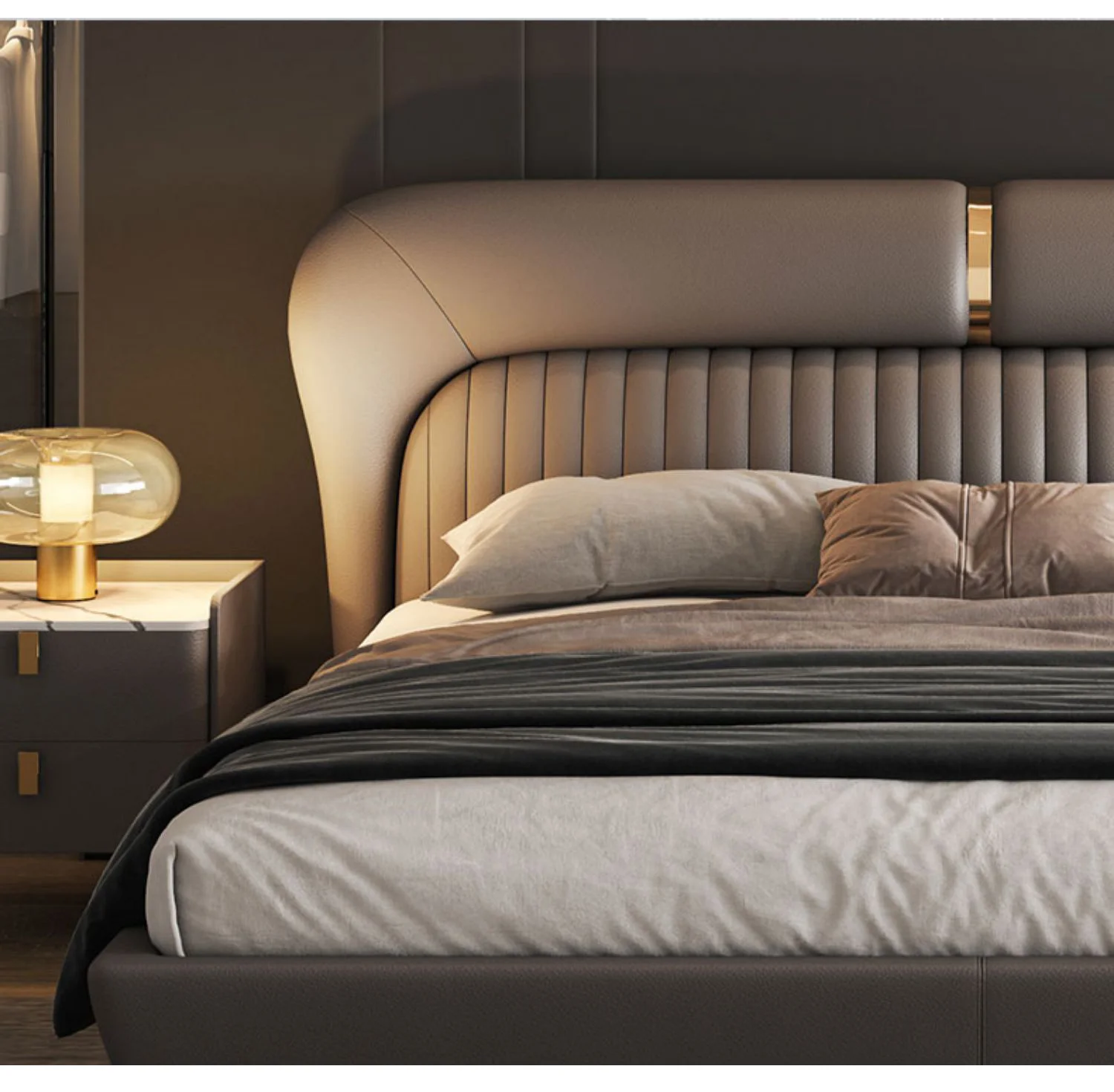 Leather Bed Light Luxury Modern Minimalist Master Bedroom Double Upholstered Bed Minimalist Design High-End Wedding Bed
