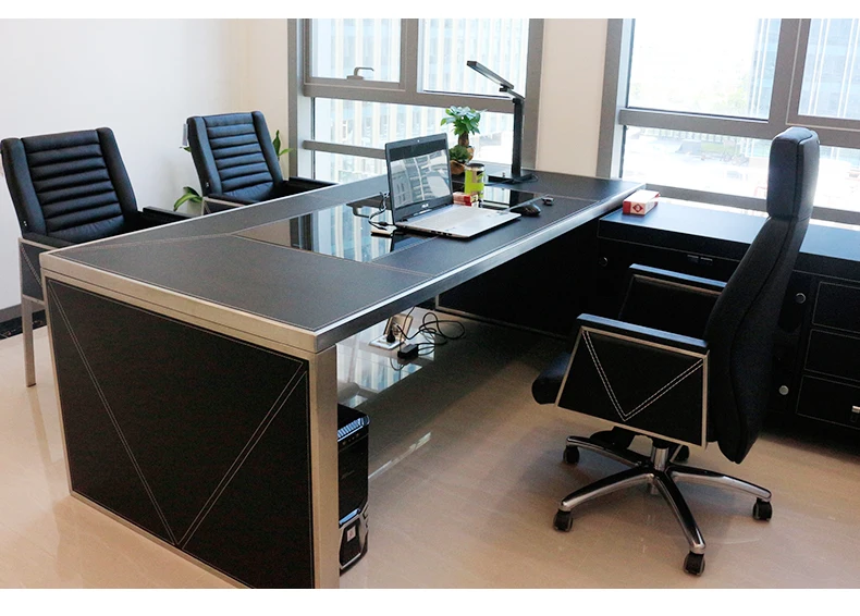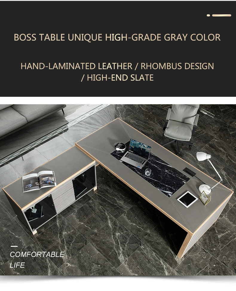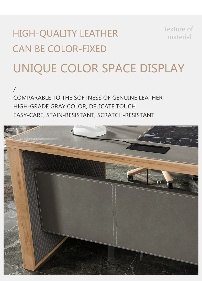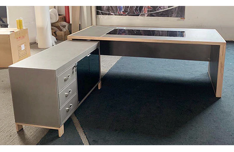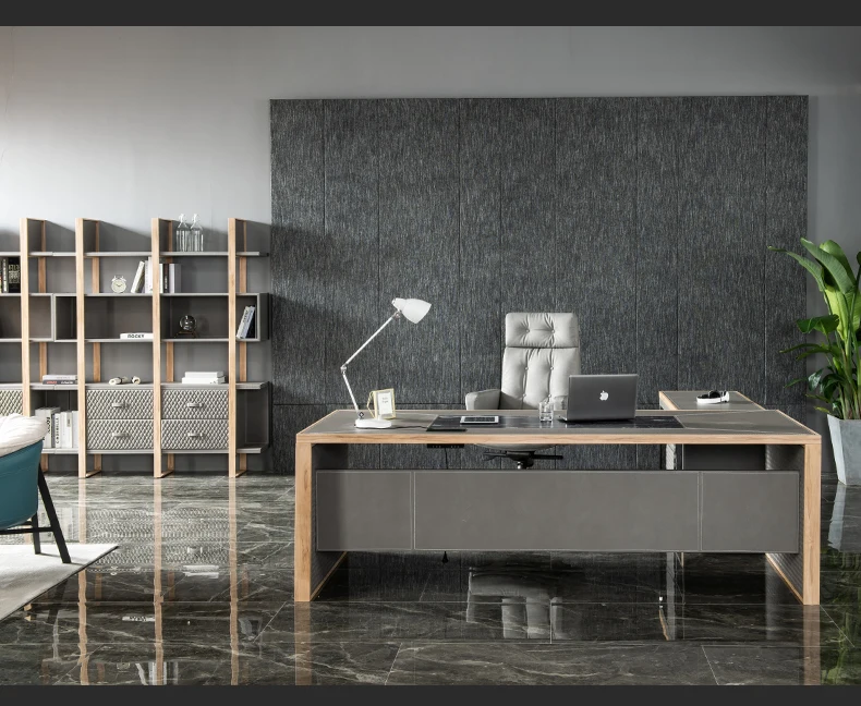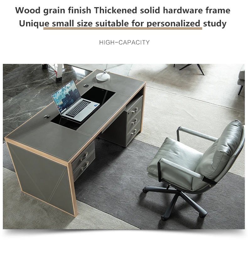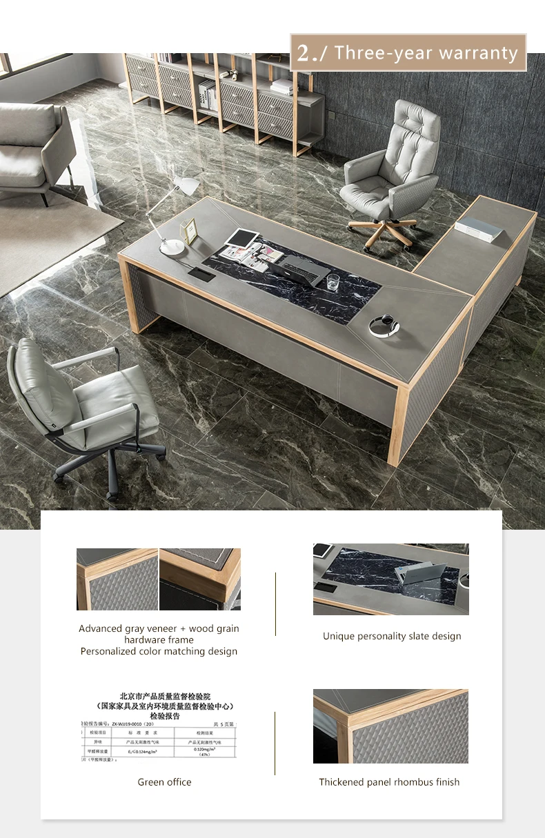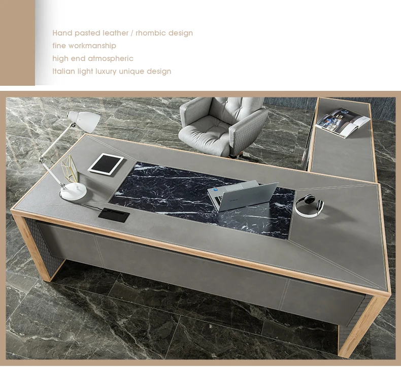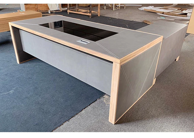 Leather decoration senior gray boss desk and chair combination office simple executive desk commercial president modern desk