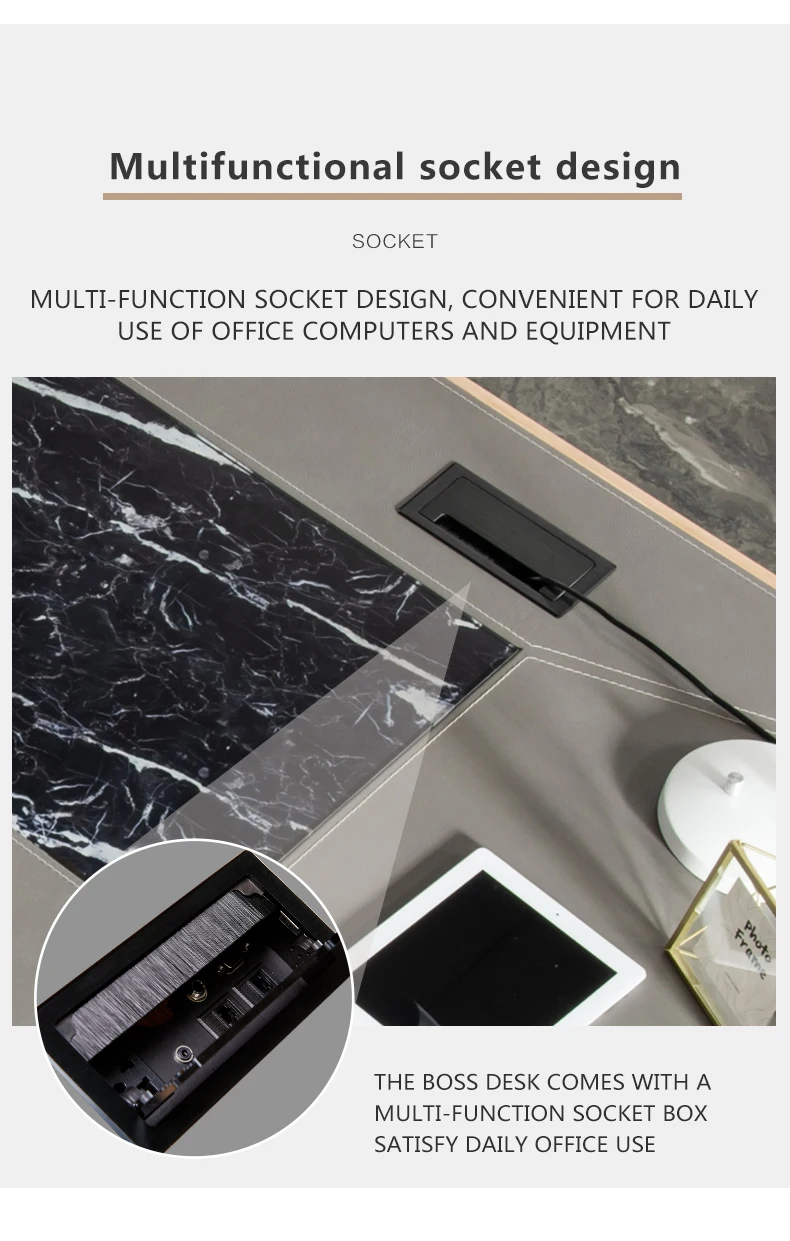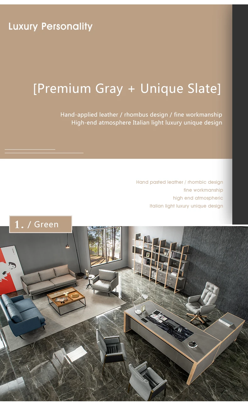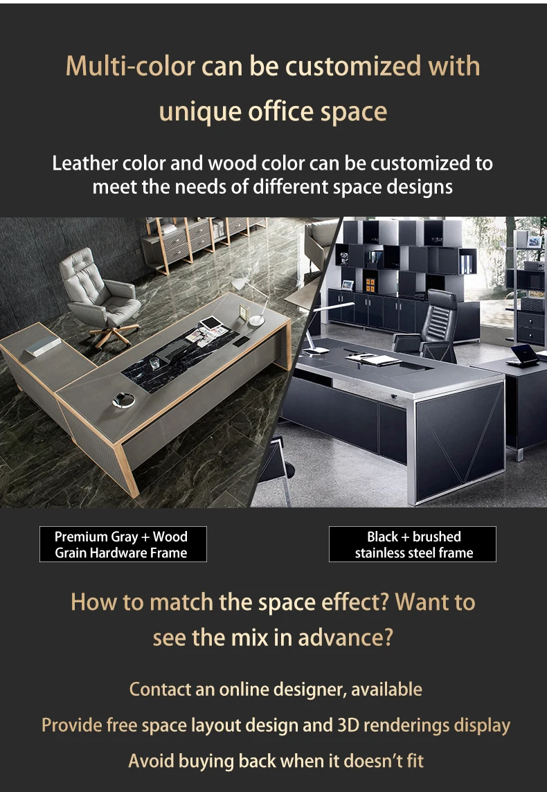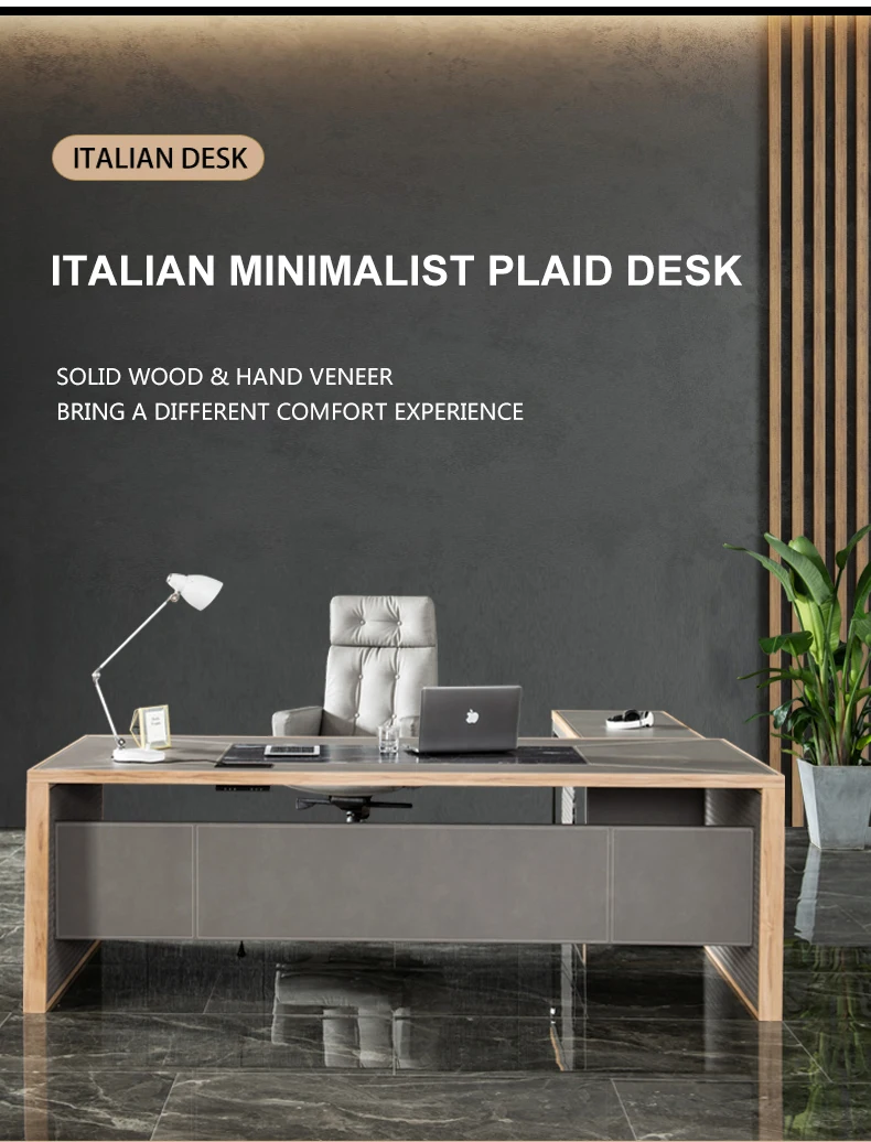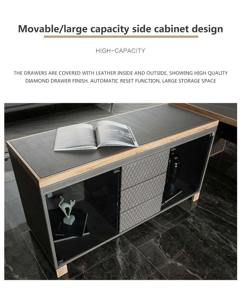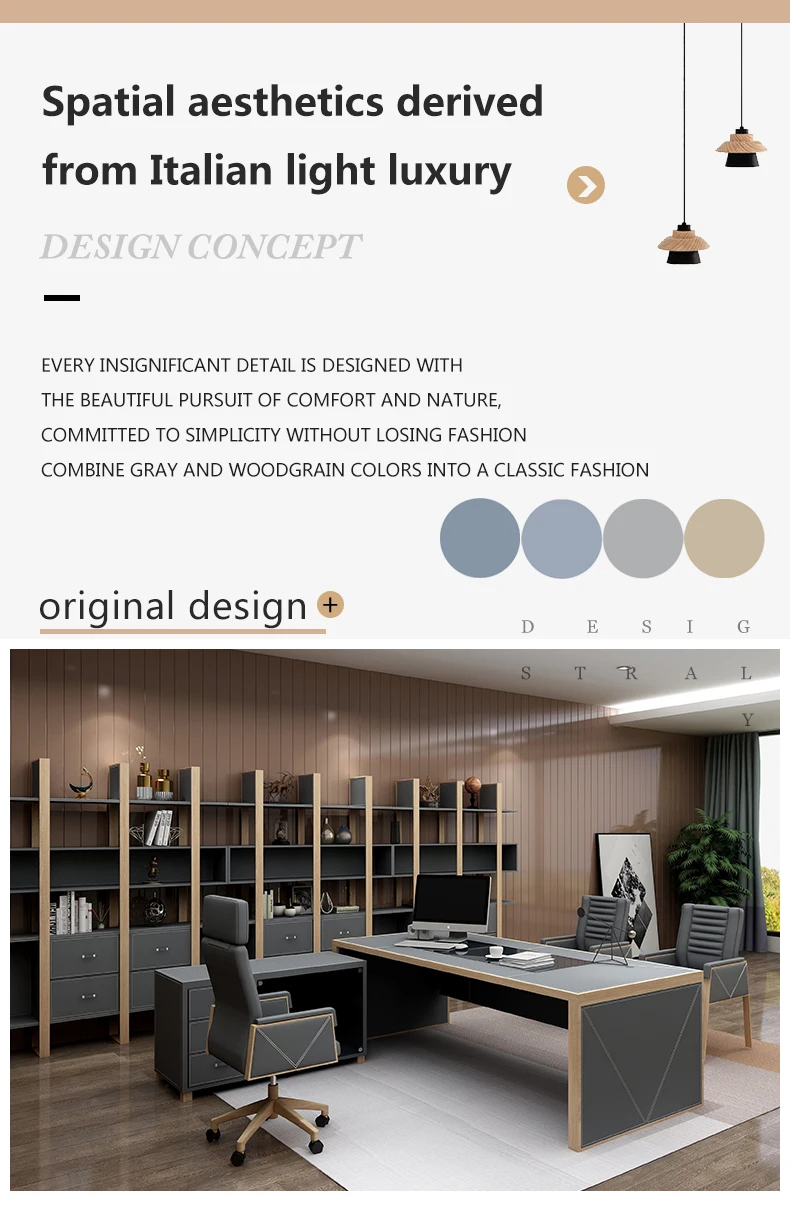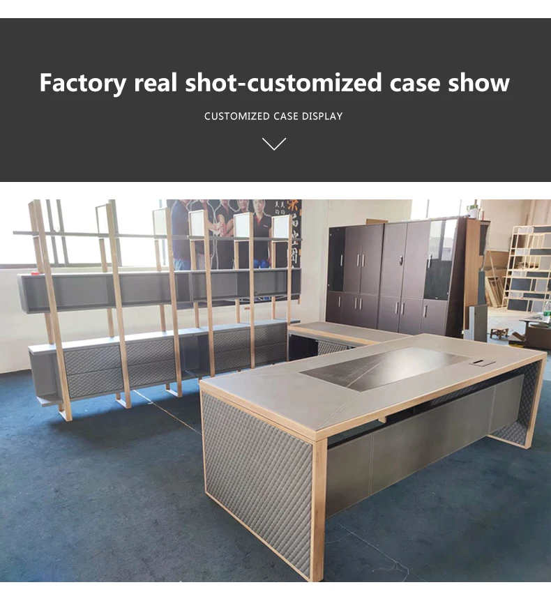 Leather decoration senior gray boss desk and chair combination office simple executive desk commercial president modern desk