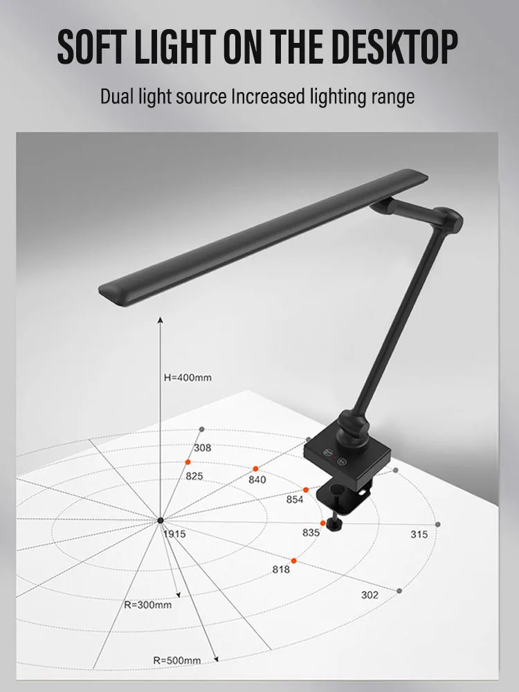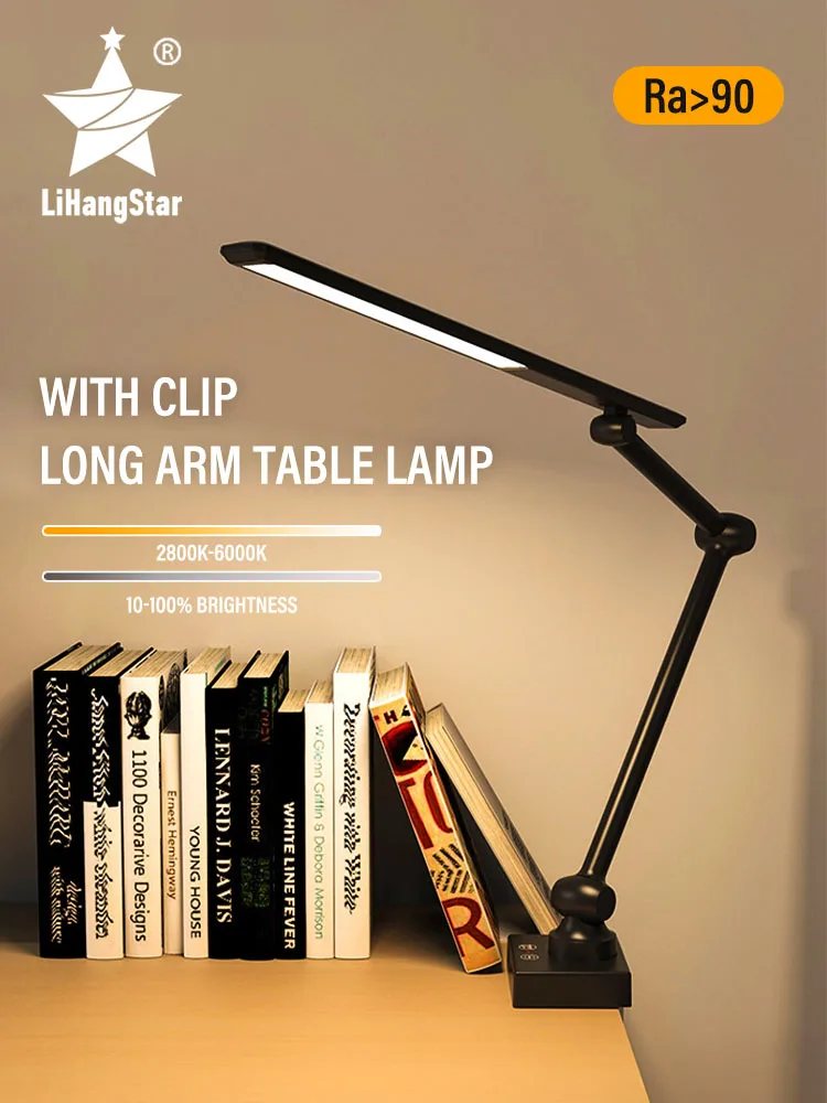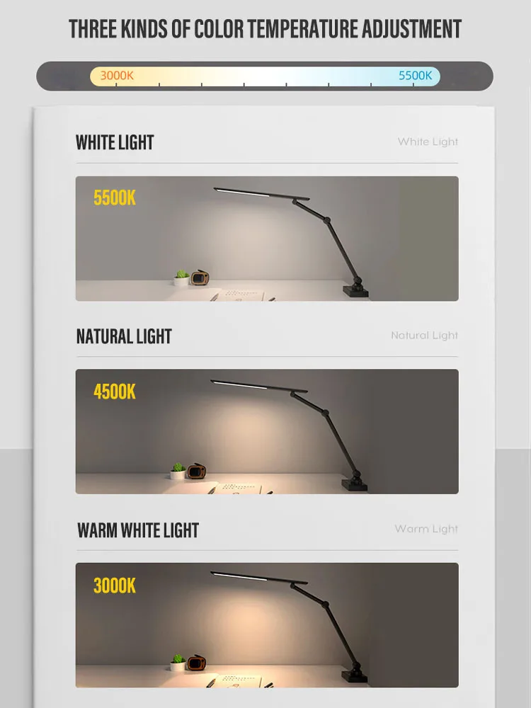 LED Swing Arm Desk Lamp with Clip 3 Kind of Illumination Dimmable USB Rechargeable Eye Care for Office Workstation Reading Study