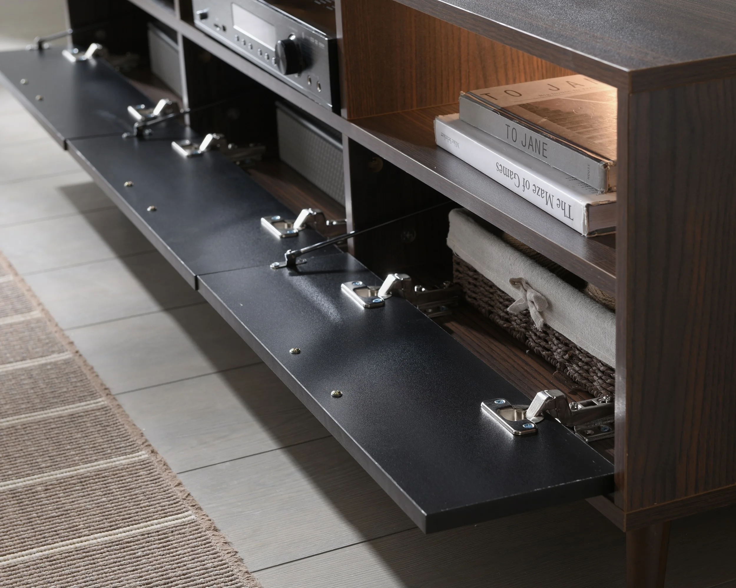 Multifunction:This TV console can be used as TV cabinet, media rack, entertainment center and more. It perfectly matches any style of room decor and is easy to maintain.