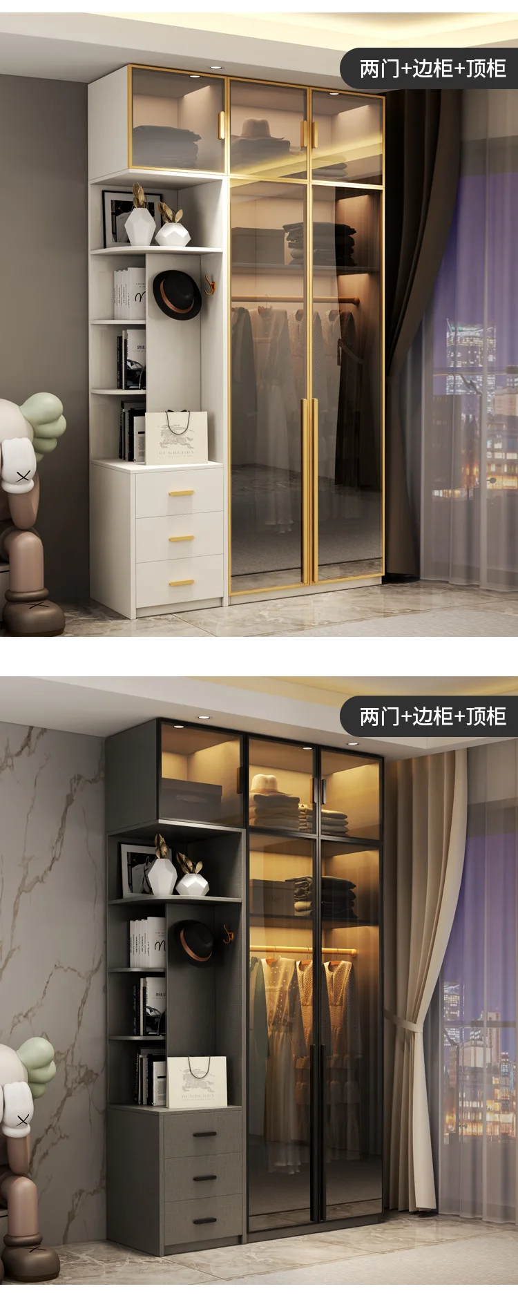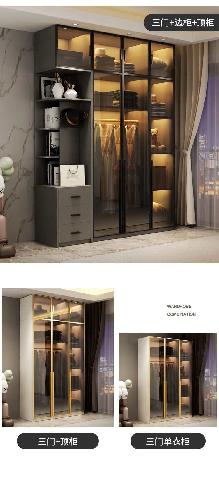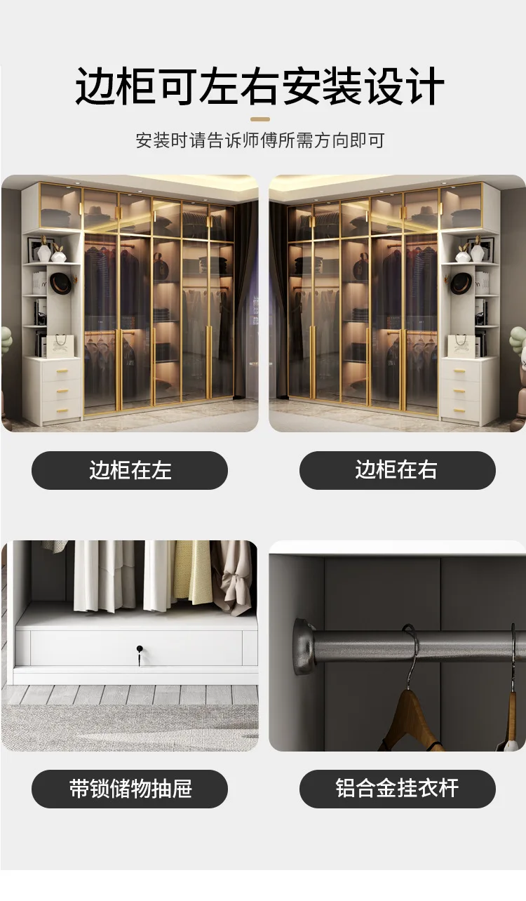 Light extravagance modern simple wardrobe dressing table integrated glass cabinet door multi-function cloakroom household bedroo