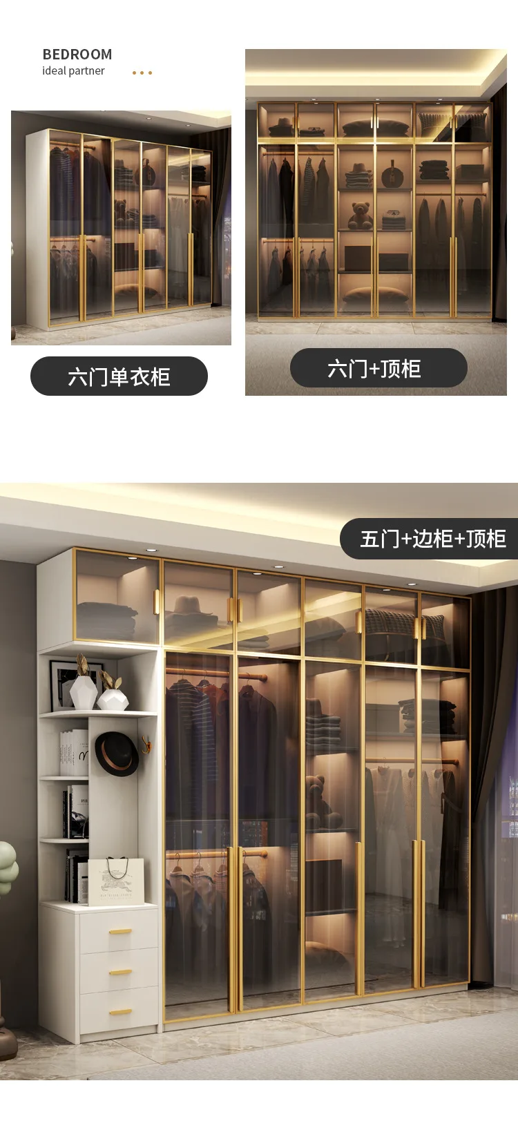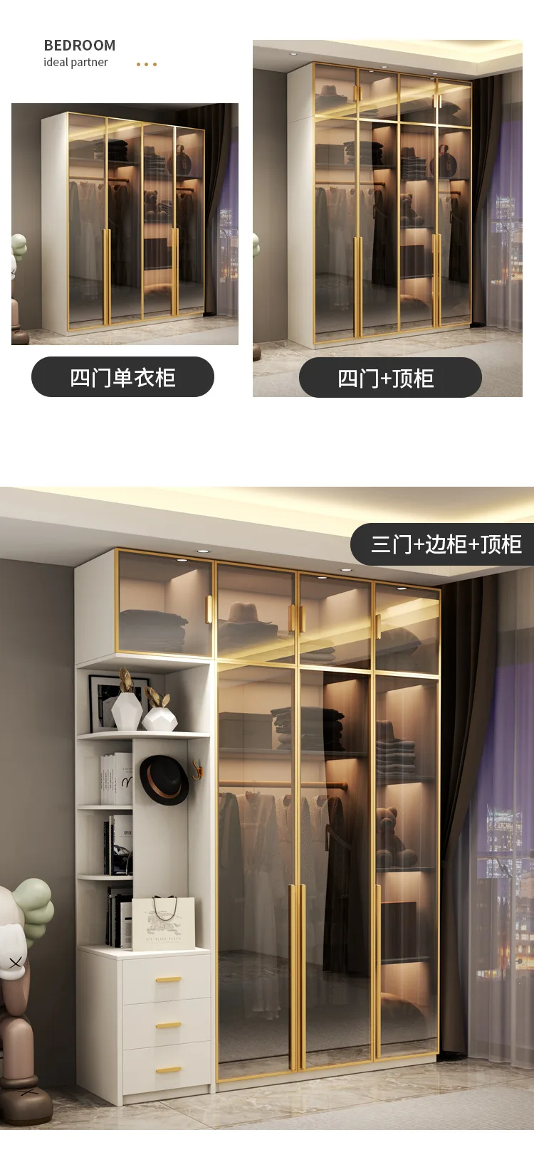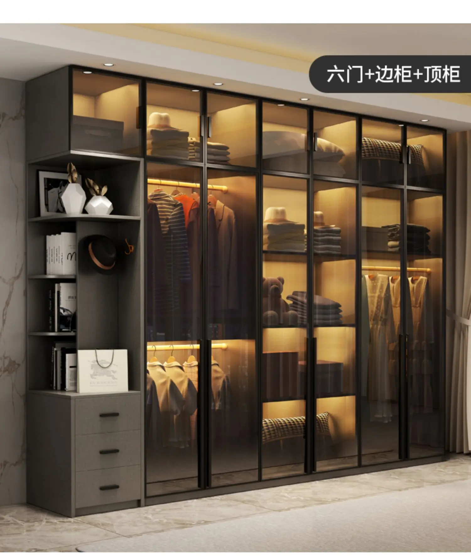 Light extravagance modern simple wardrobe dressing table integrated glass cabinet door multi-function cloakroom household bedroo