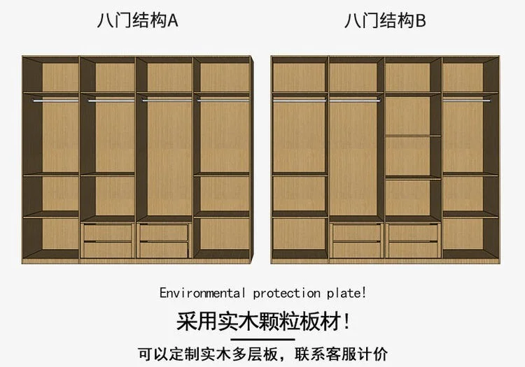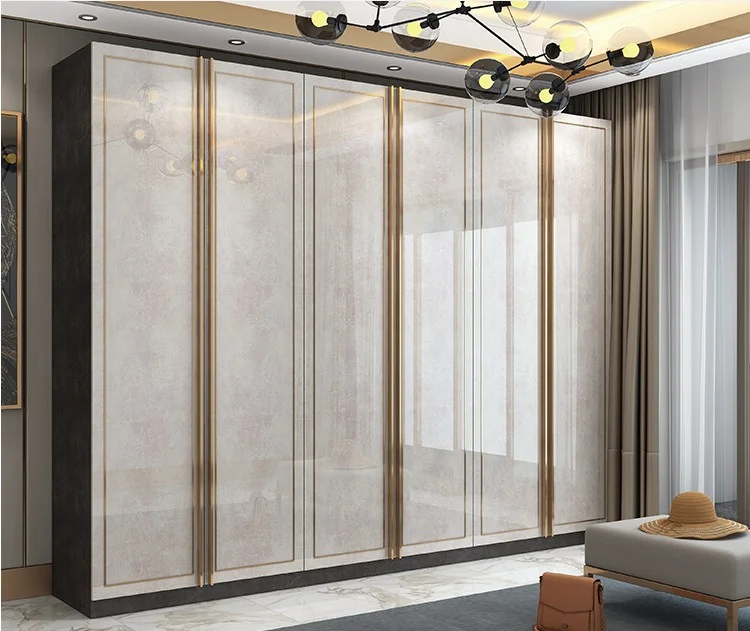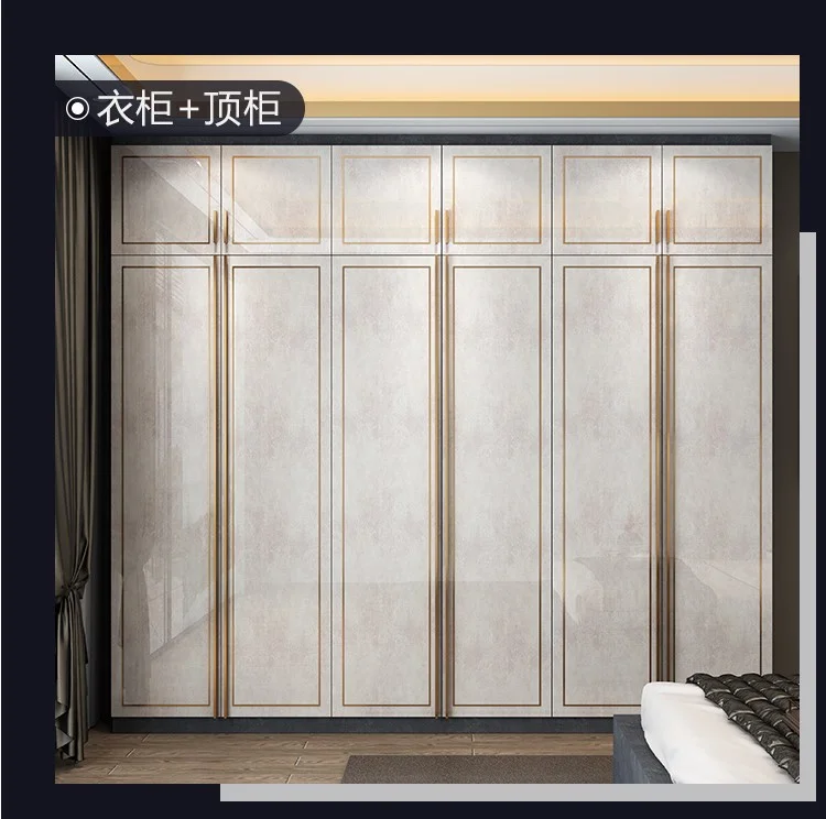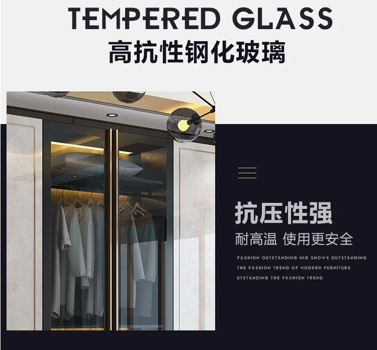 Light luxury glass door wardrobe, household bedroom, modern and simple wooden flat open wardrobe, 345668 door large wardrobe