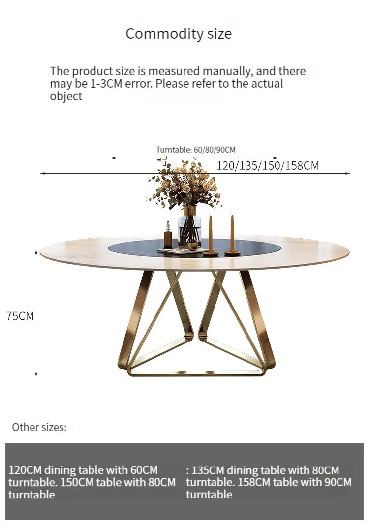 Light Luxury Gold Dining Table Round Turntable 1.2/1.5m Dining Table Set 8 Chairs Minimalist Esstische Home Furniture GPF50YH
