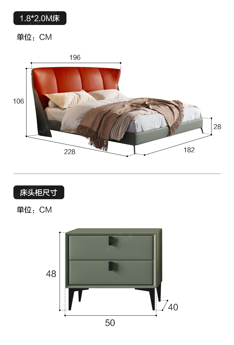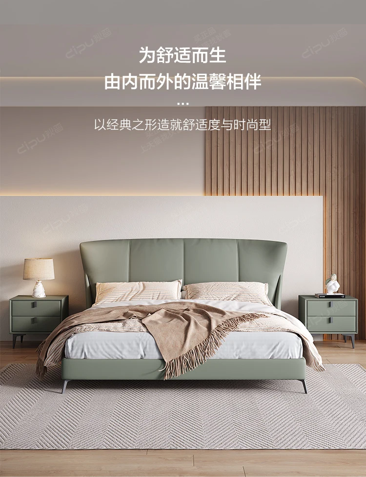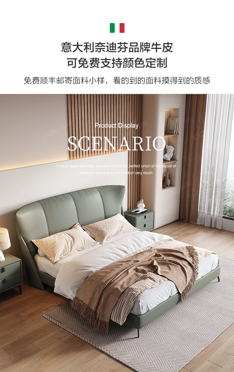 Light luxury leather bed master bedroom soft bag double bed Nordic simple modern Italian minimalist fashion designer bed