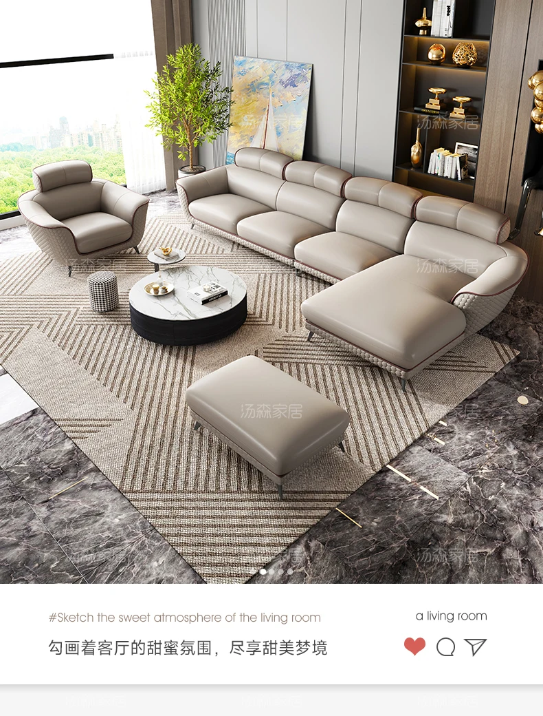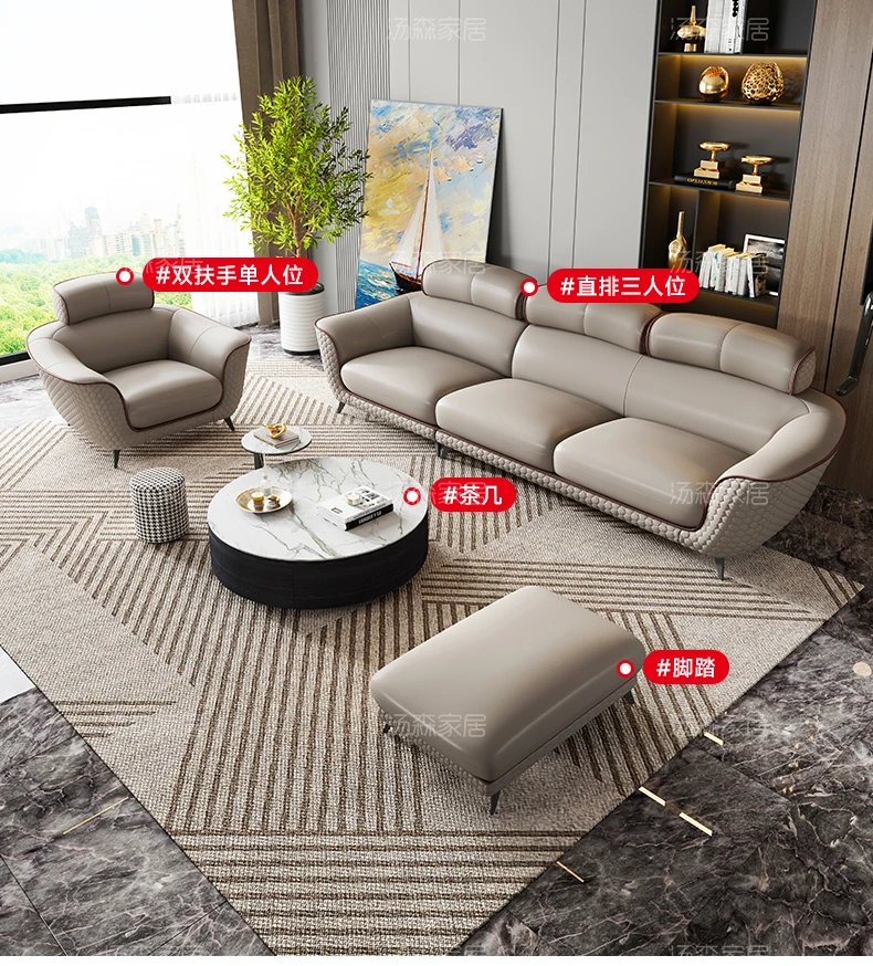 Light luxury leather sofa living room very simple modern size apartment furniture high-end first layer cowhide sofa