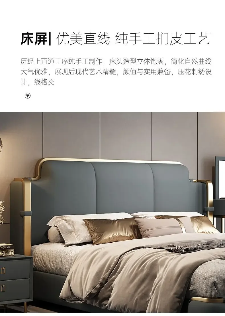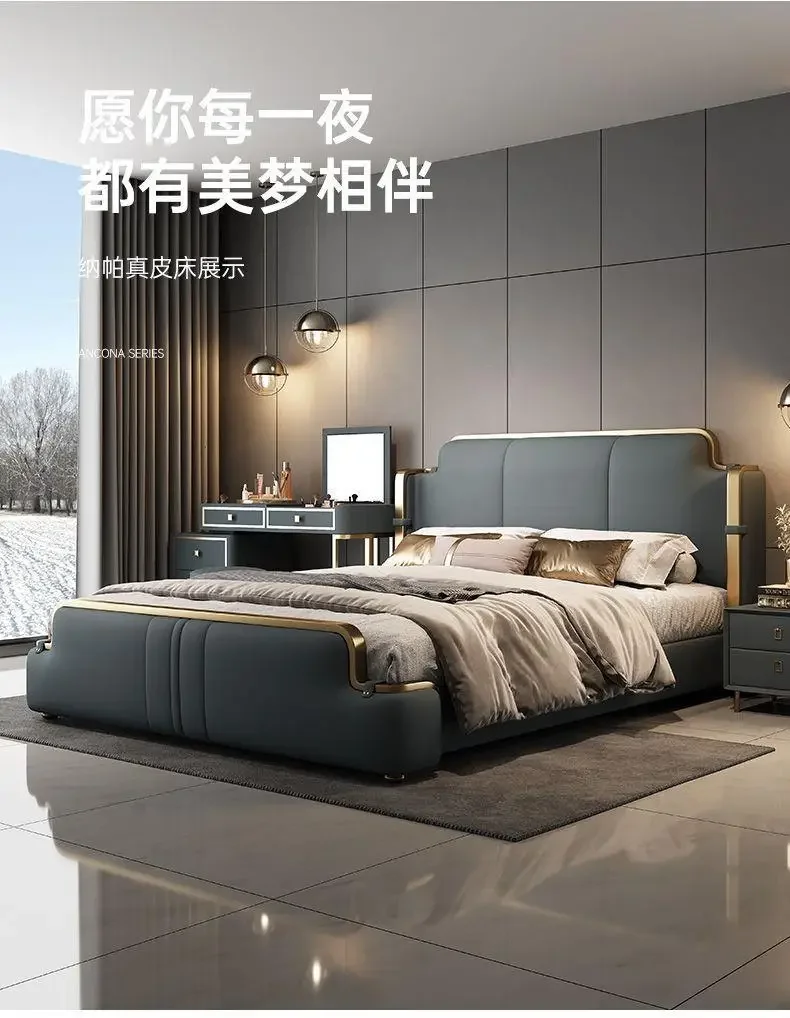 Light Luxury Minimalist Napa Leather Bed 1.8m Master Bedding Double High end Luxury 1.5m Modern Minimalist Leather Art Bed