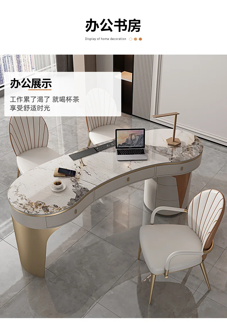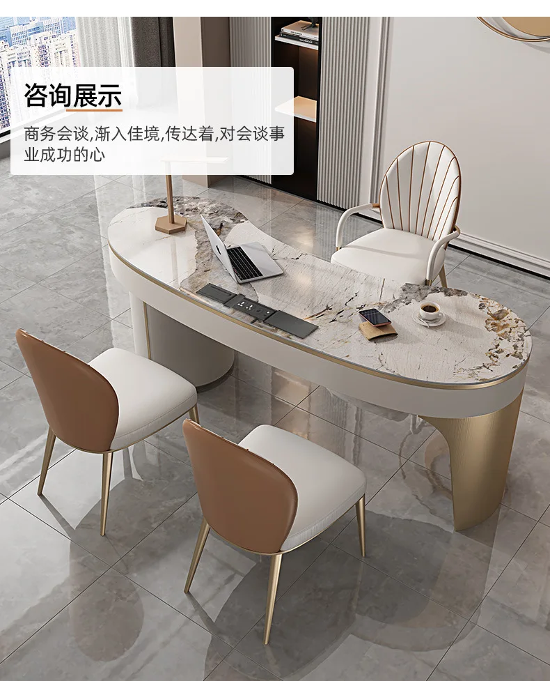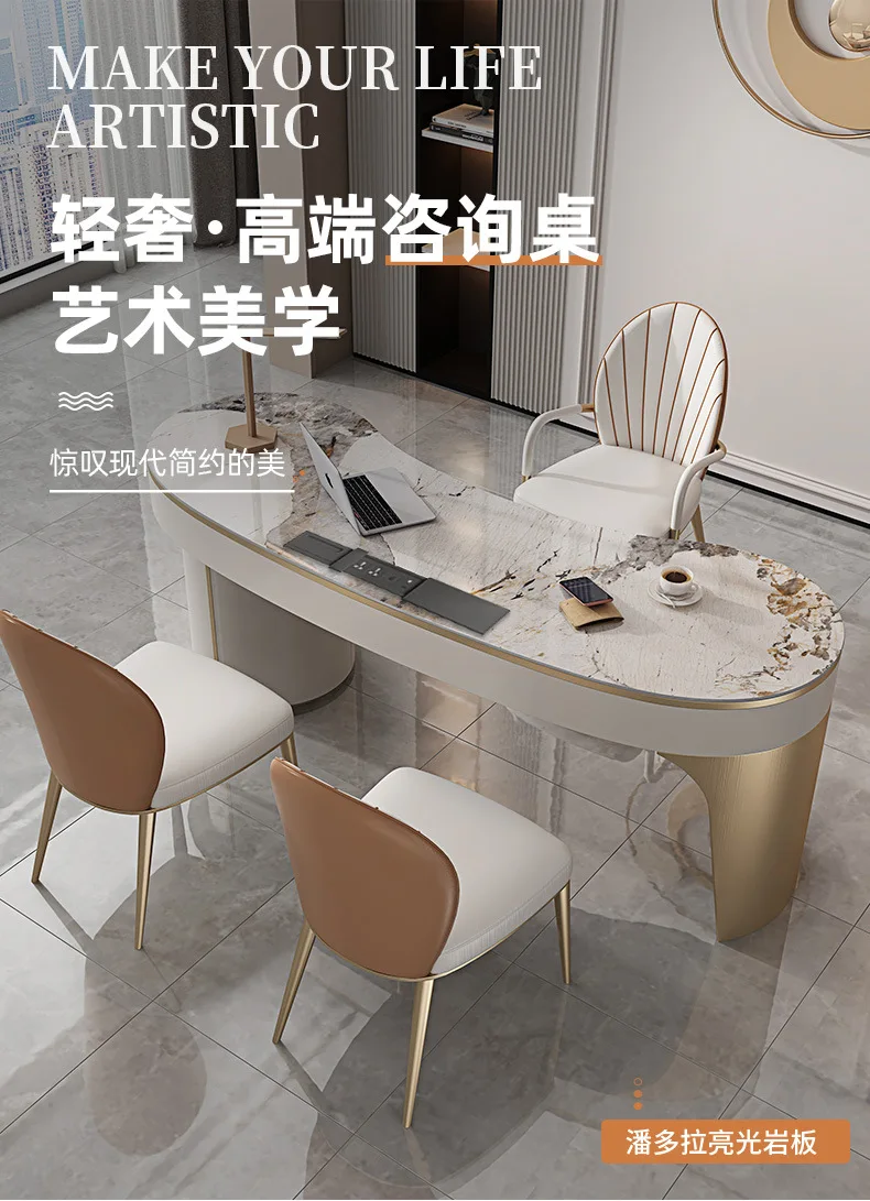 Light luxury rock board consulting desk, modern simple 160cm desk, color: Lishi white