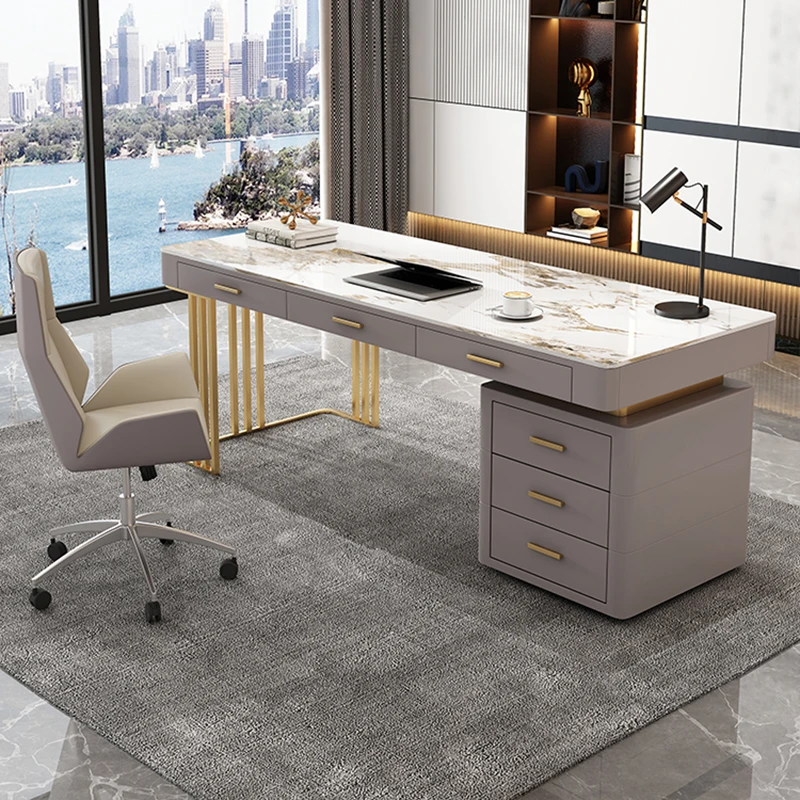 Light Luxury Rock Board Desk Modern Computer Desktop Desk Simple Boss Office Minimalist Furniture Work Desk Bedroom Writing