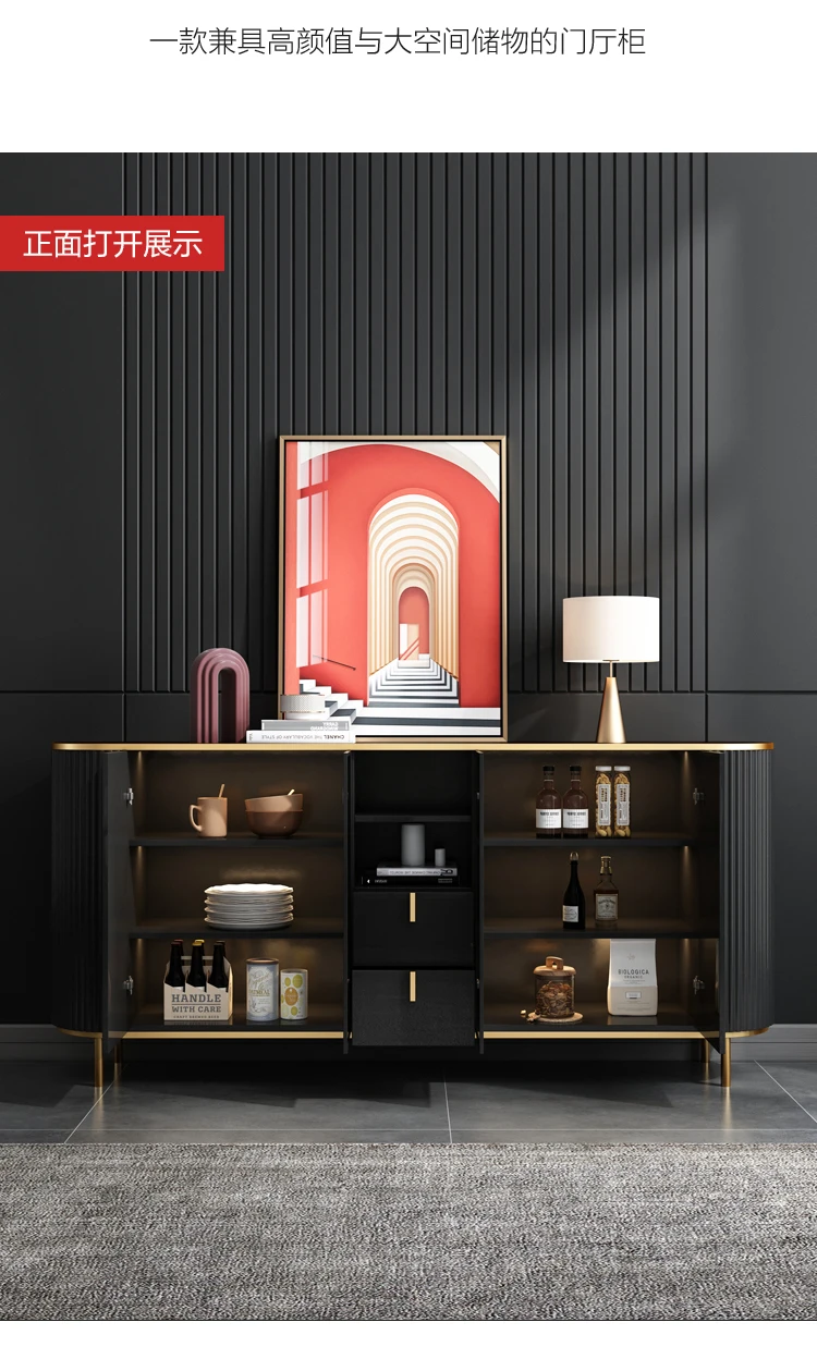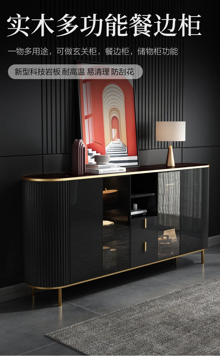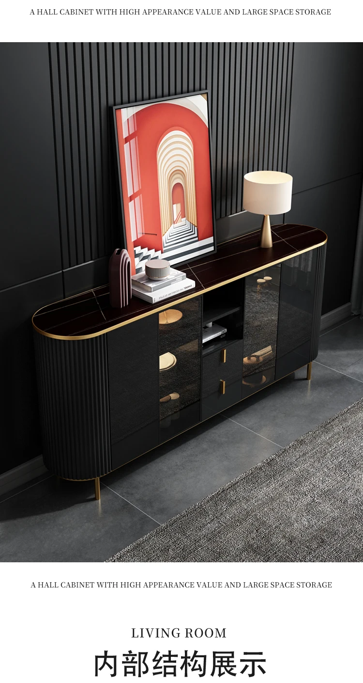 Light luxury rock plate table side cabinet Solid wood simple living room entrance cabinet marble tea side cabinet