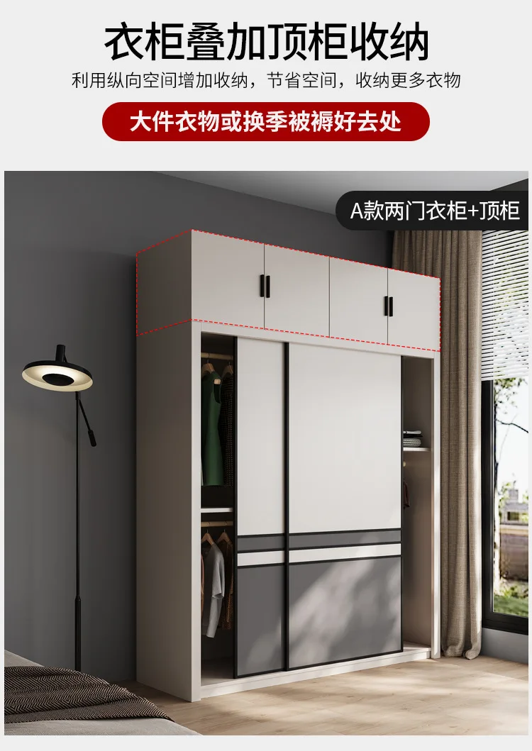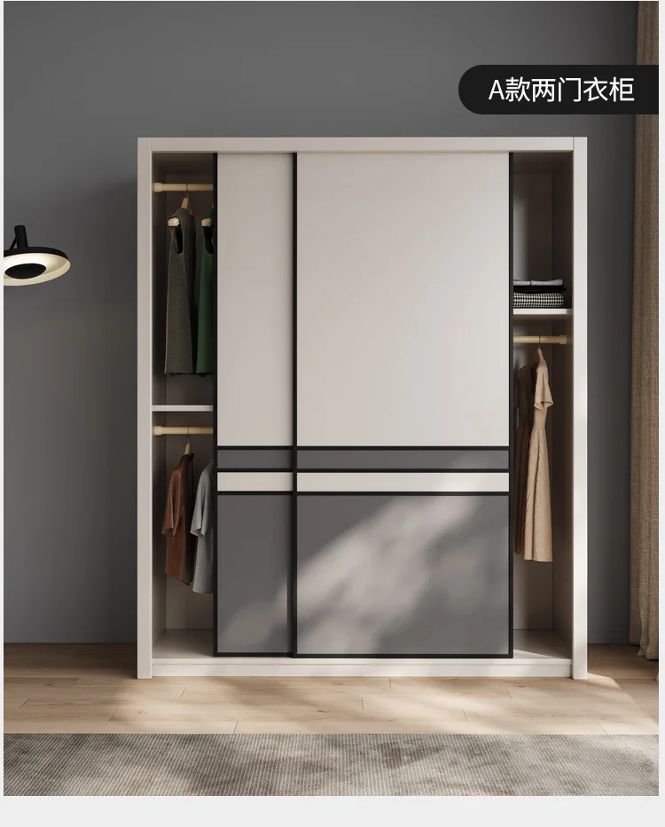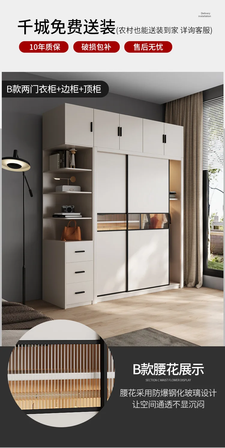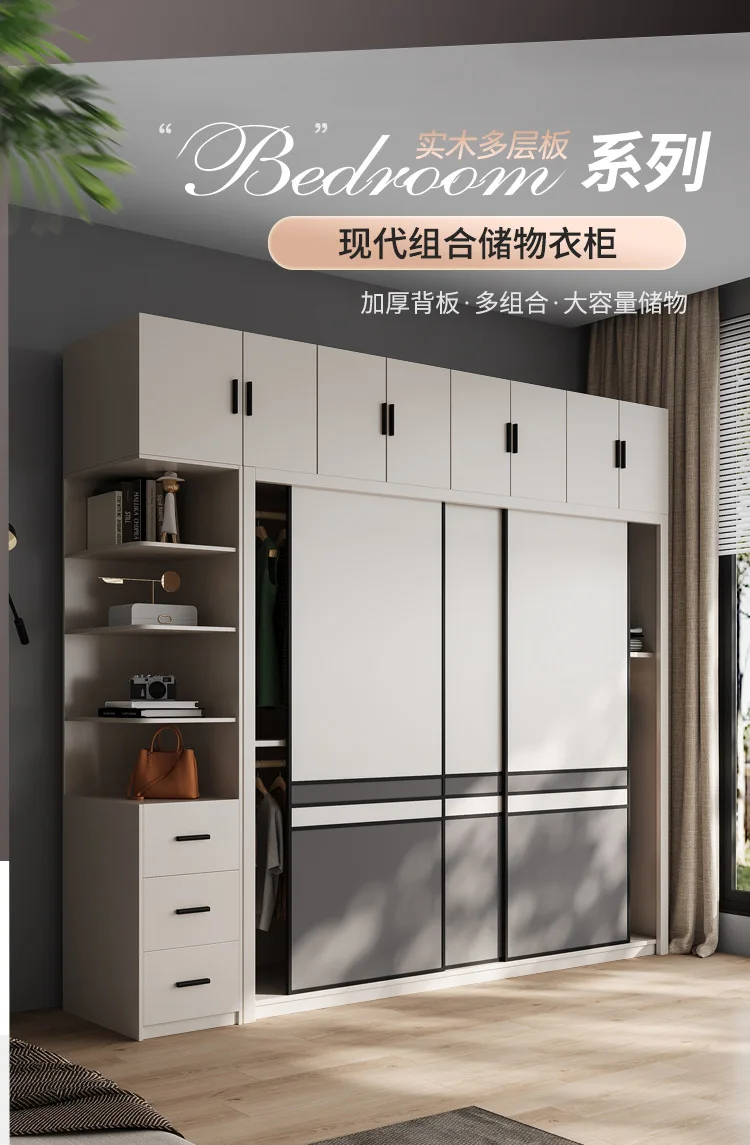 Light luxury wardrobe modern simple solid wood multilayer sliding door large wardrobe household bedroom Nordic moving door cabin