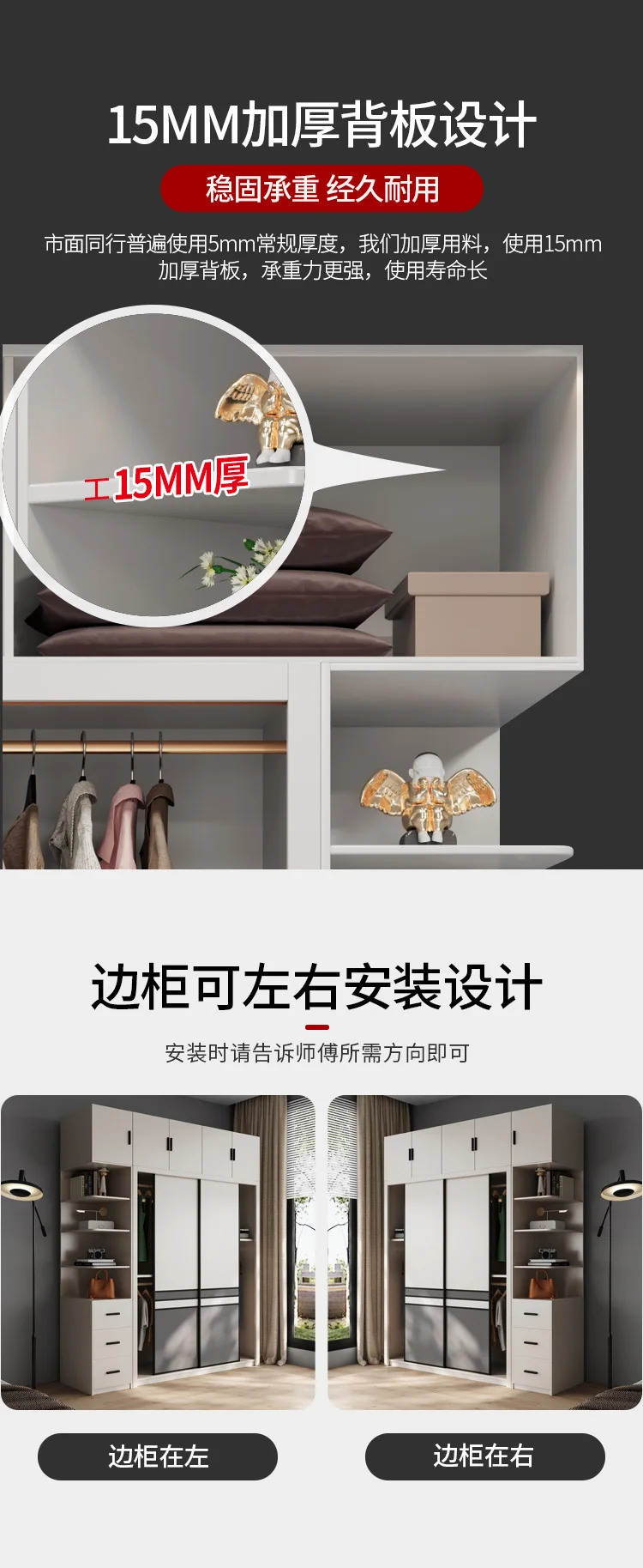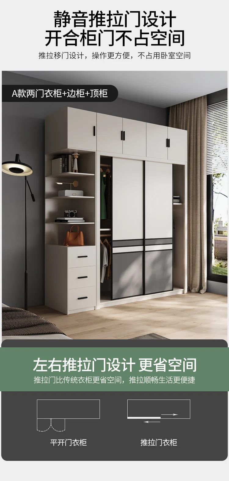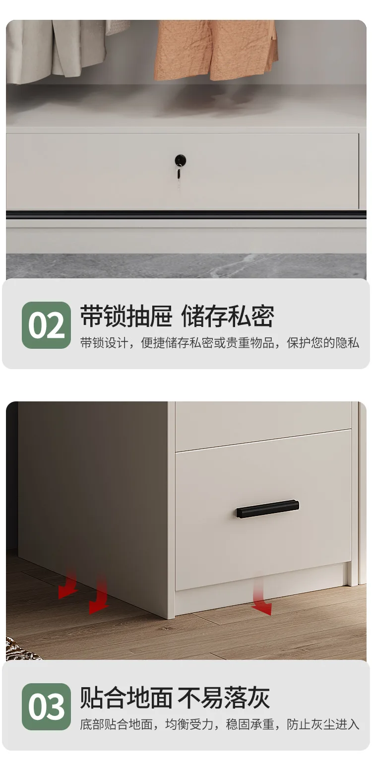 Light luxury wardrobe modern simple solid wood multilayer sliding door large wardrobe household bedroom Nordic moving door cabin