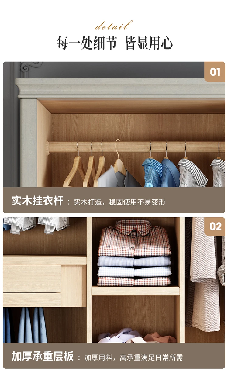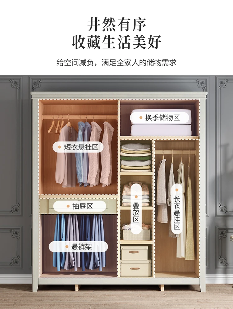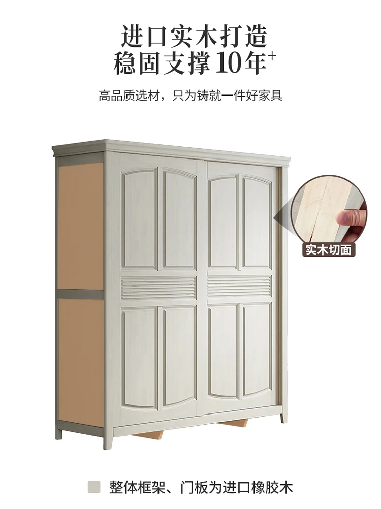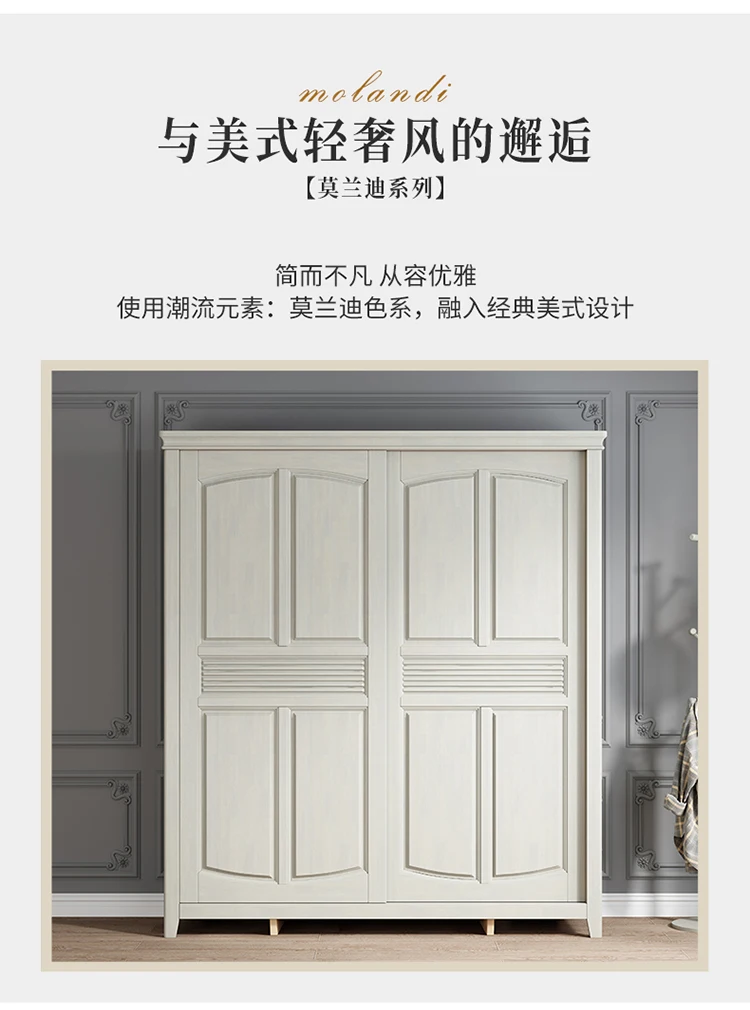 Lightweight and luxurious solid wood wardrobe with sliding doors for current household bedrooms, two door coat cabinets, storage