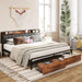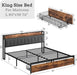 LIKIMIO King Size Bed Frame, Storage Headboard with Charging Station, Platform Bed with Drawers, No Box Spring Needed