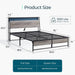 - Heavy-duty & Ample Under-bed Storage - Constructed with heavy-duty steel and accented with greige wood, this queen bed frame with headboard can bear up to 1500 pounds and provides ample under bed storage space. The bed feet are curved to avoid foot collision, creating a neat and stylish look for your room. The dimensions of the queen size bed frame are LWH: 86.5" x 60.5" x 40.2" (Suitable for 80" x 60" Mattress)