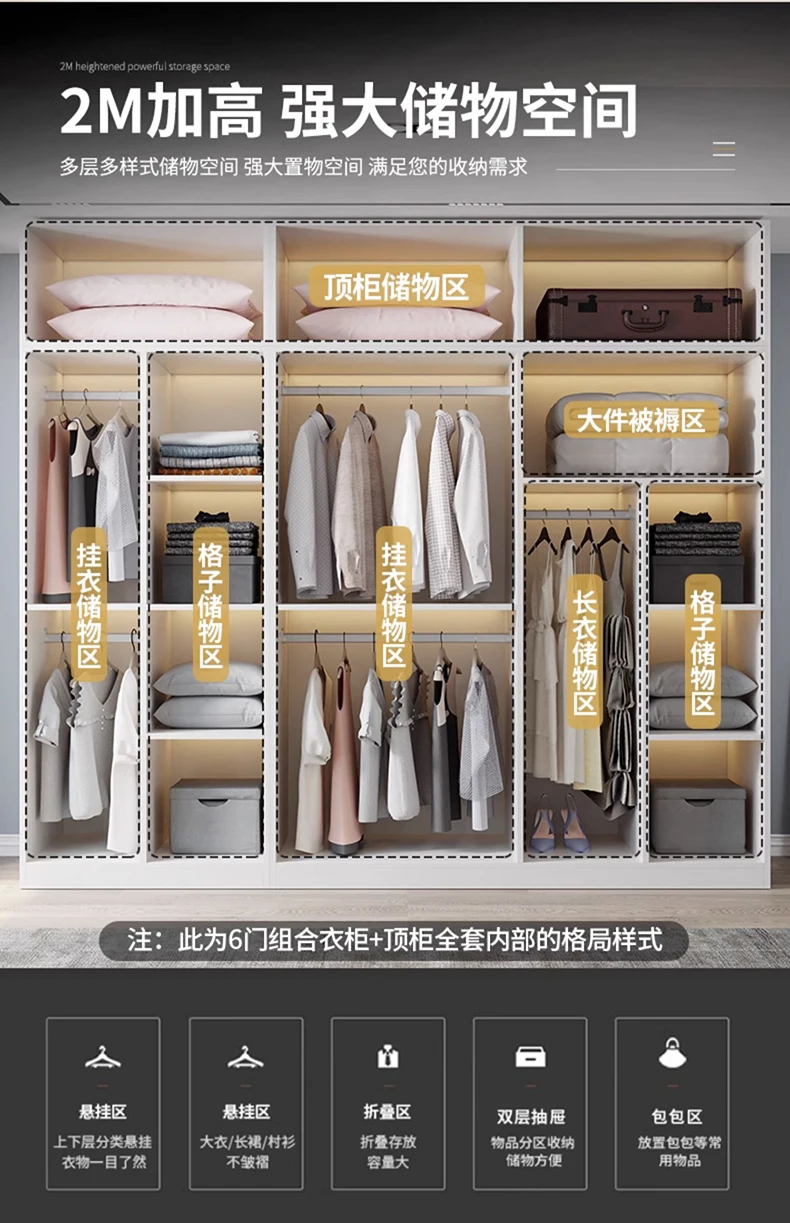 Living Room Minimalist Closet Rod Bracket Indoor Floor Bedroom European Wooden Wardrobe Luxury Meuble Chambre Design Furniture