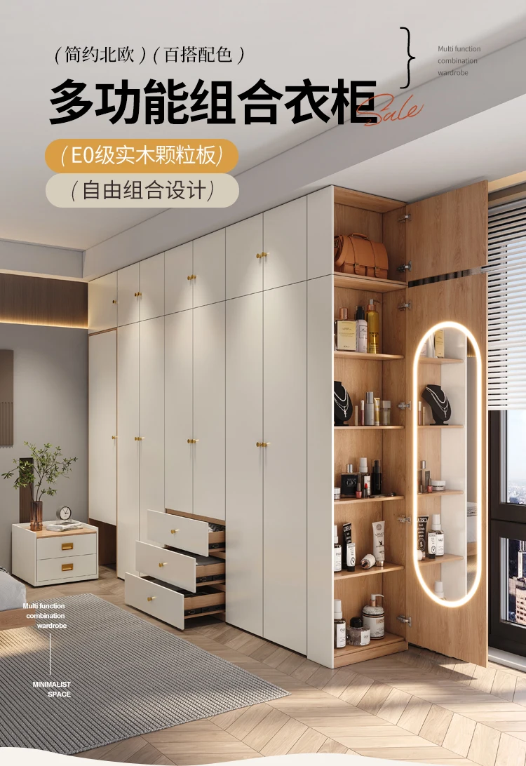 Log wardrobe home bedroom Nordic modern door combination Japanese small household storage cabinet