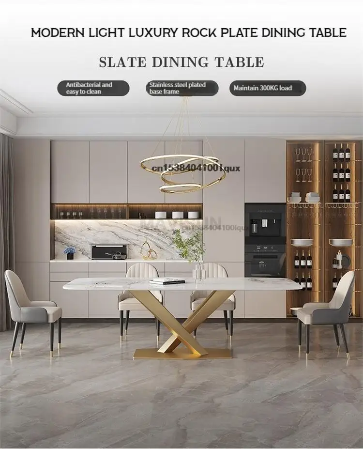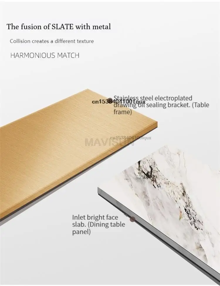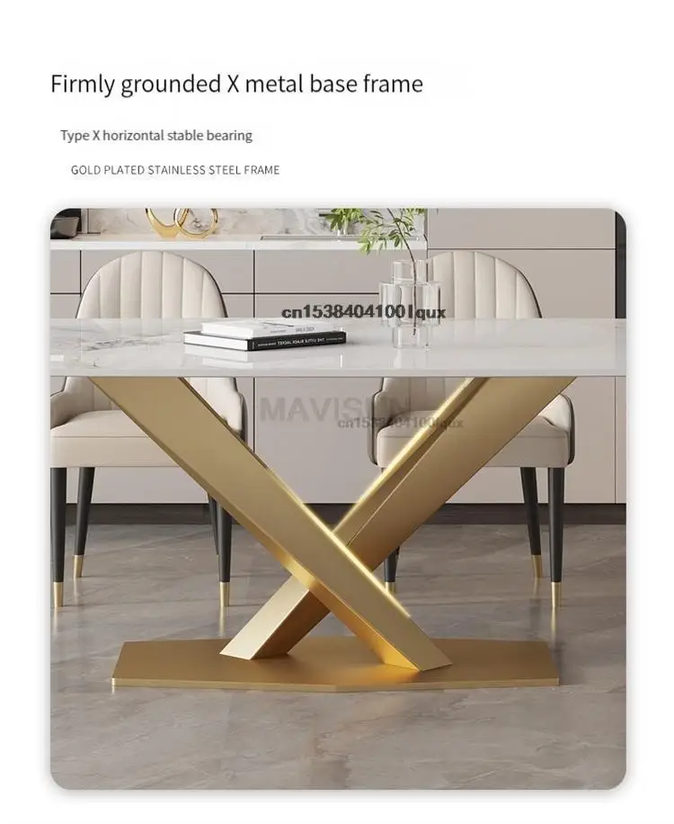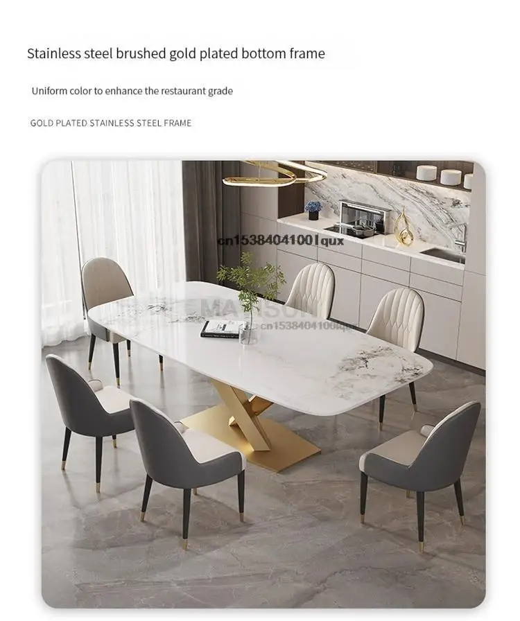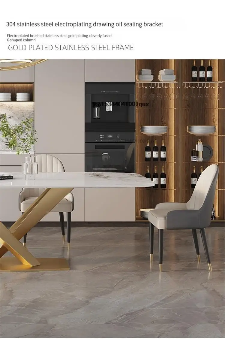 Luxurious Kitchen Table In Rectangle Marble Desk Top Stainless Steel Golden Finish 6 People Luxury Dining Table And Chair Set