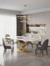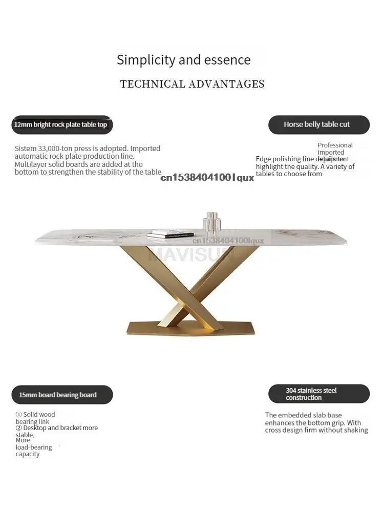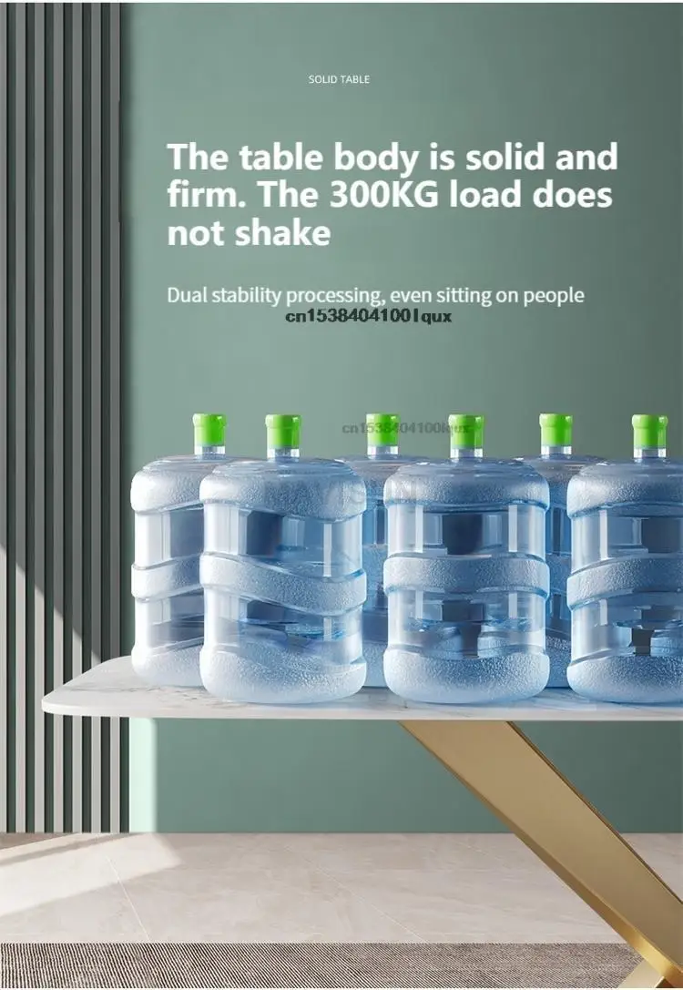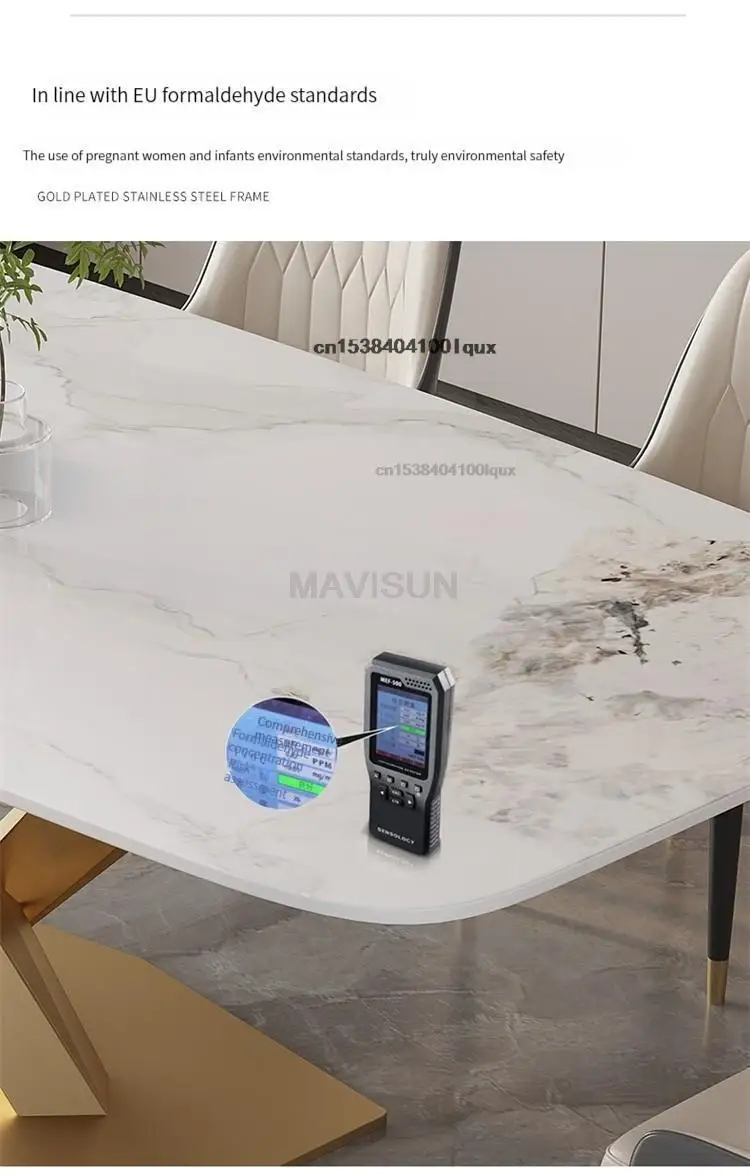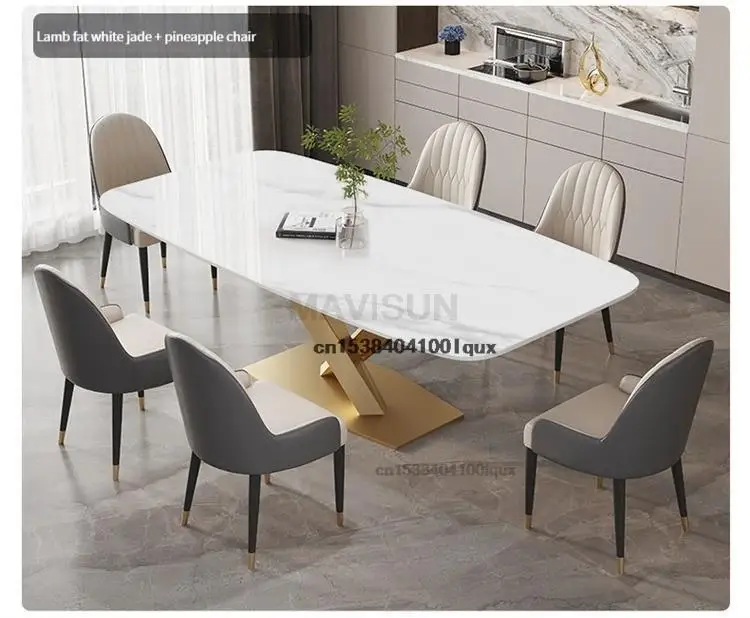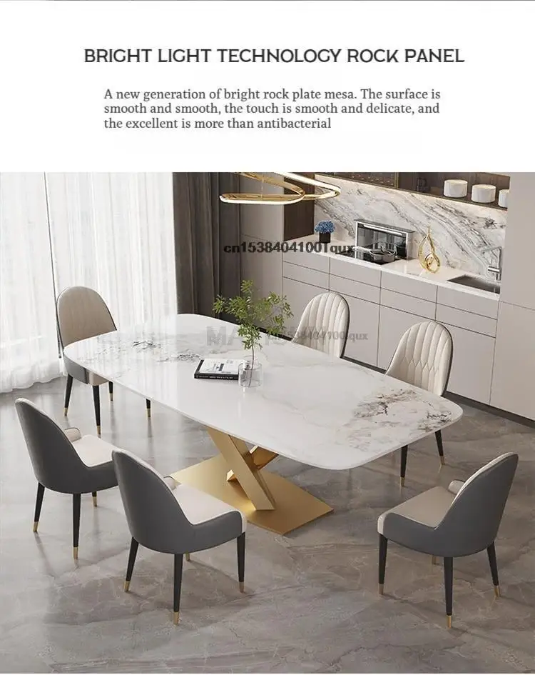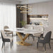Luxurious Kitchen Table In Rectangle Marble Desk Top Stainless Steel Golden Finish 6 People Luxury Dining Table And Chair Set