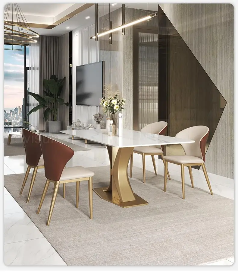 Luxury Center Dining Table Light Modern Minimalist Designer Creative Rectangular Table Chair Set Table Pliante Home Furniture