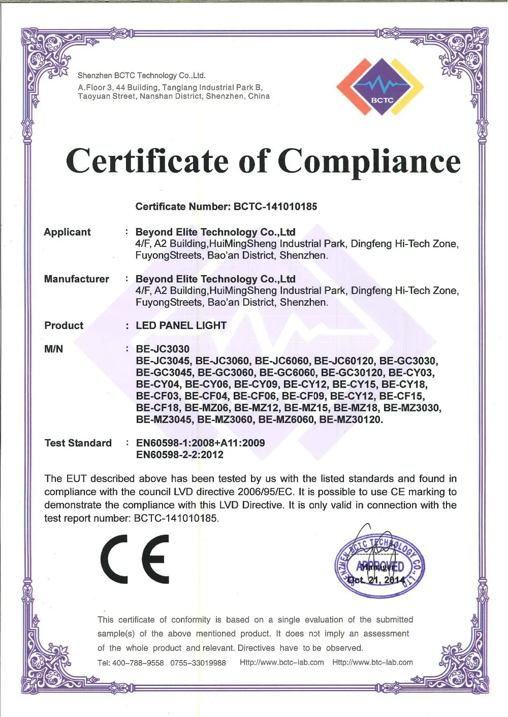 Certification: LVD