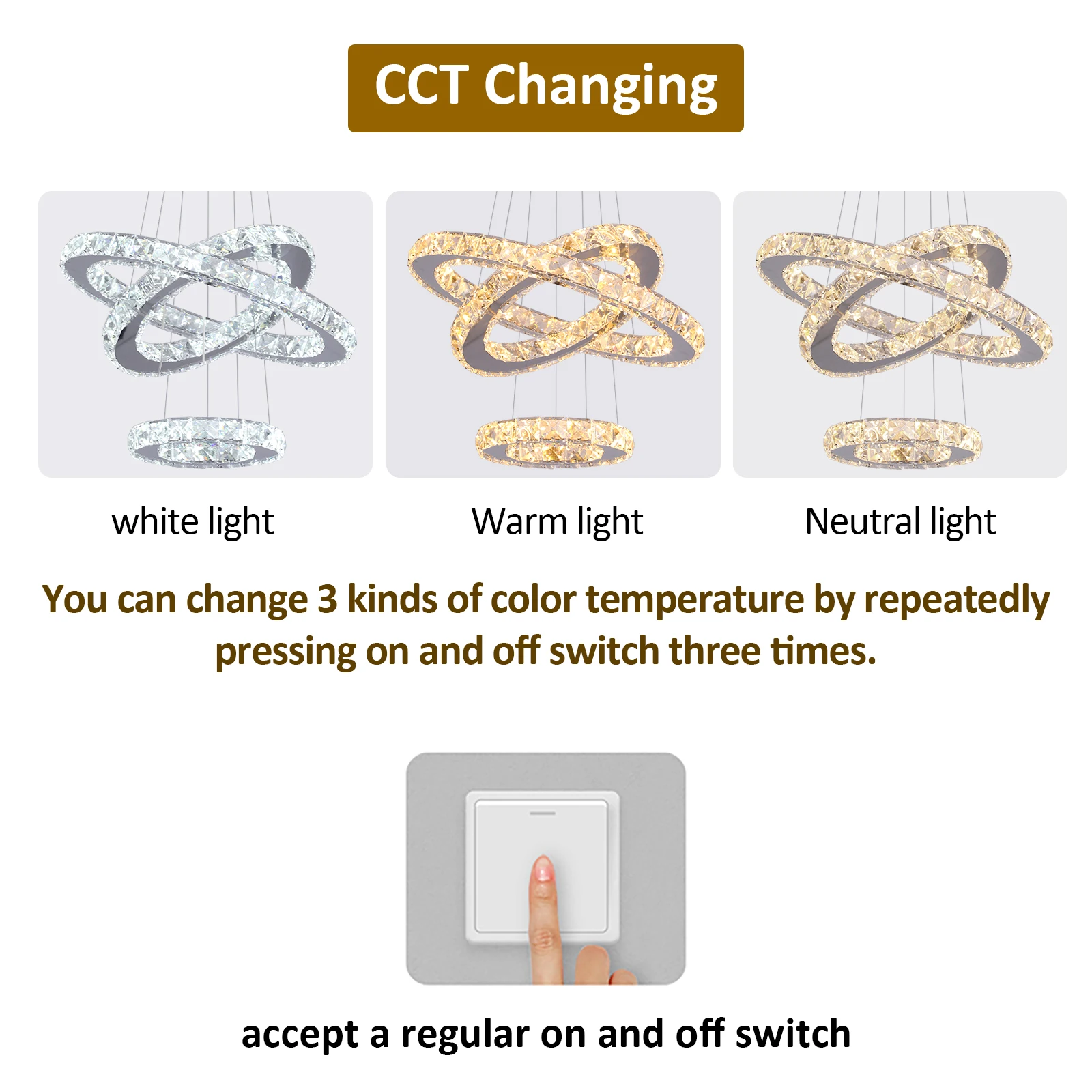 Luxury Diamond 3/5 Rings Circle k9 Crystal Led Chandelier Lighting Fixtures Lamparas Modernas Hanging Lamp Luminaria Lustres