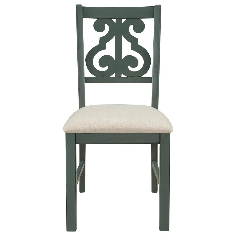 Luxury Dining Table and Chair Set Exquisitely Designed Hollow Chair Back for Dining Room (Antique Blue& Dark Brown)