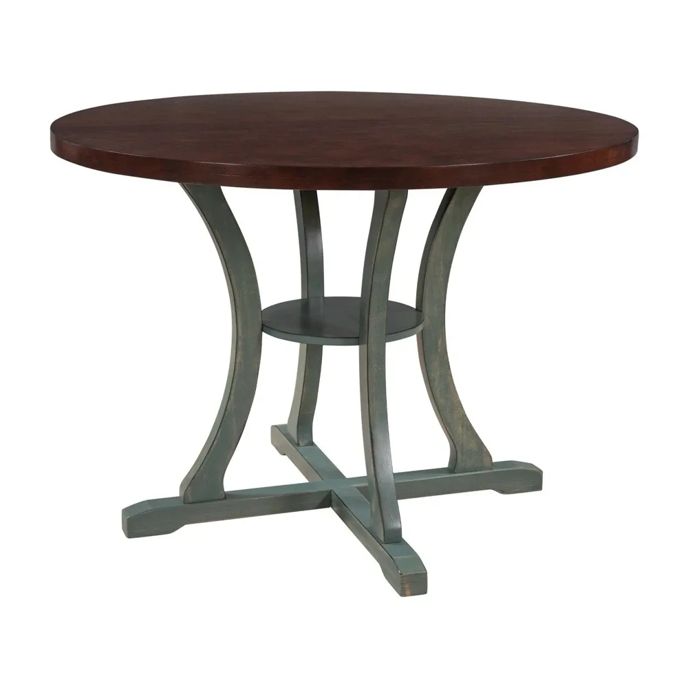 Product Name | 5-Piece Round Dining Table and 4 Fabric Chairs with Special-shaped Table Legs and Storage Shelf (Antique Blue/ Dark Brown) |