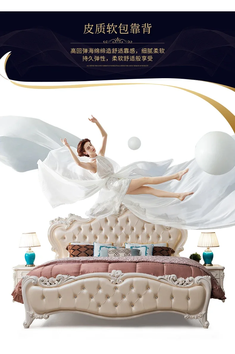 Luxury European Double Bed Royal Modern Whitr King Size Twin Double Bed Kids Sleeping Bedroom Nordic Cama Casal Household Items