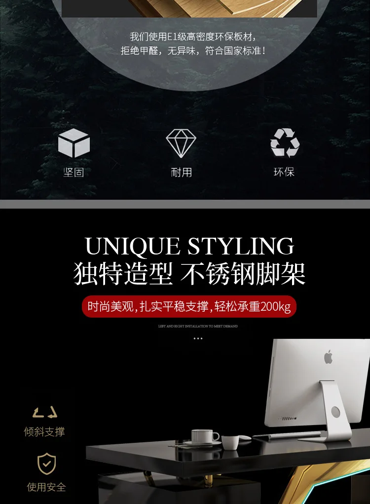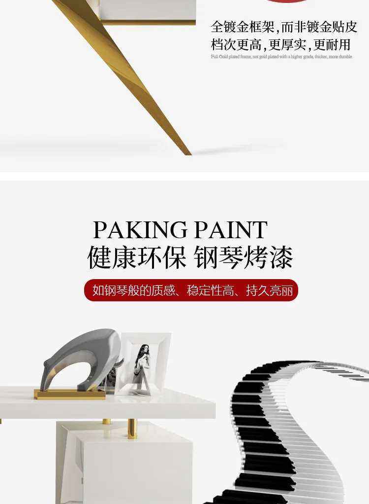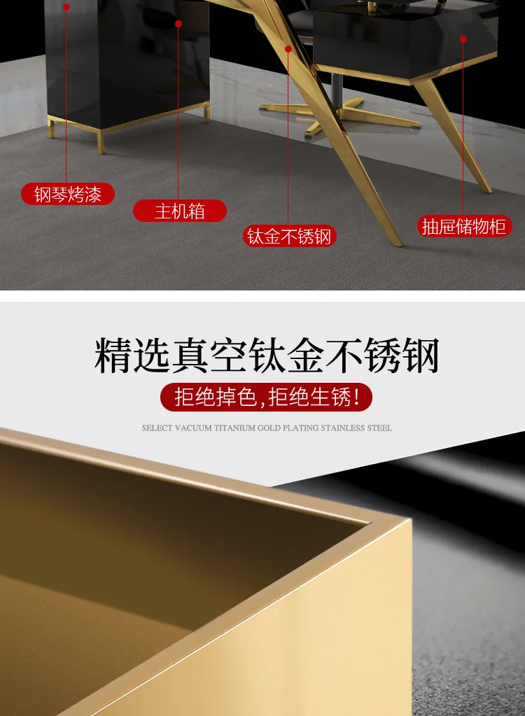 Luxury Gold Stainless Steel Computer Table Working Desk for home office furniture set