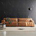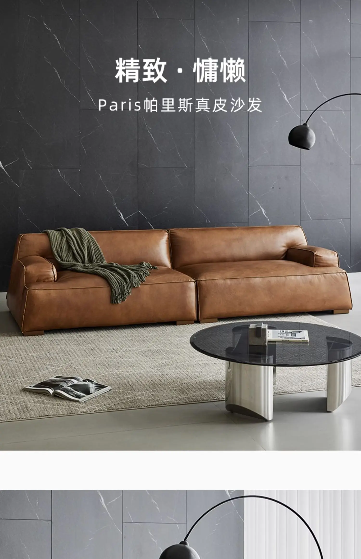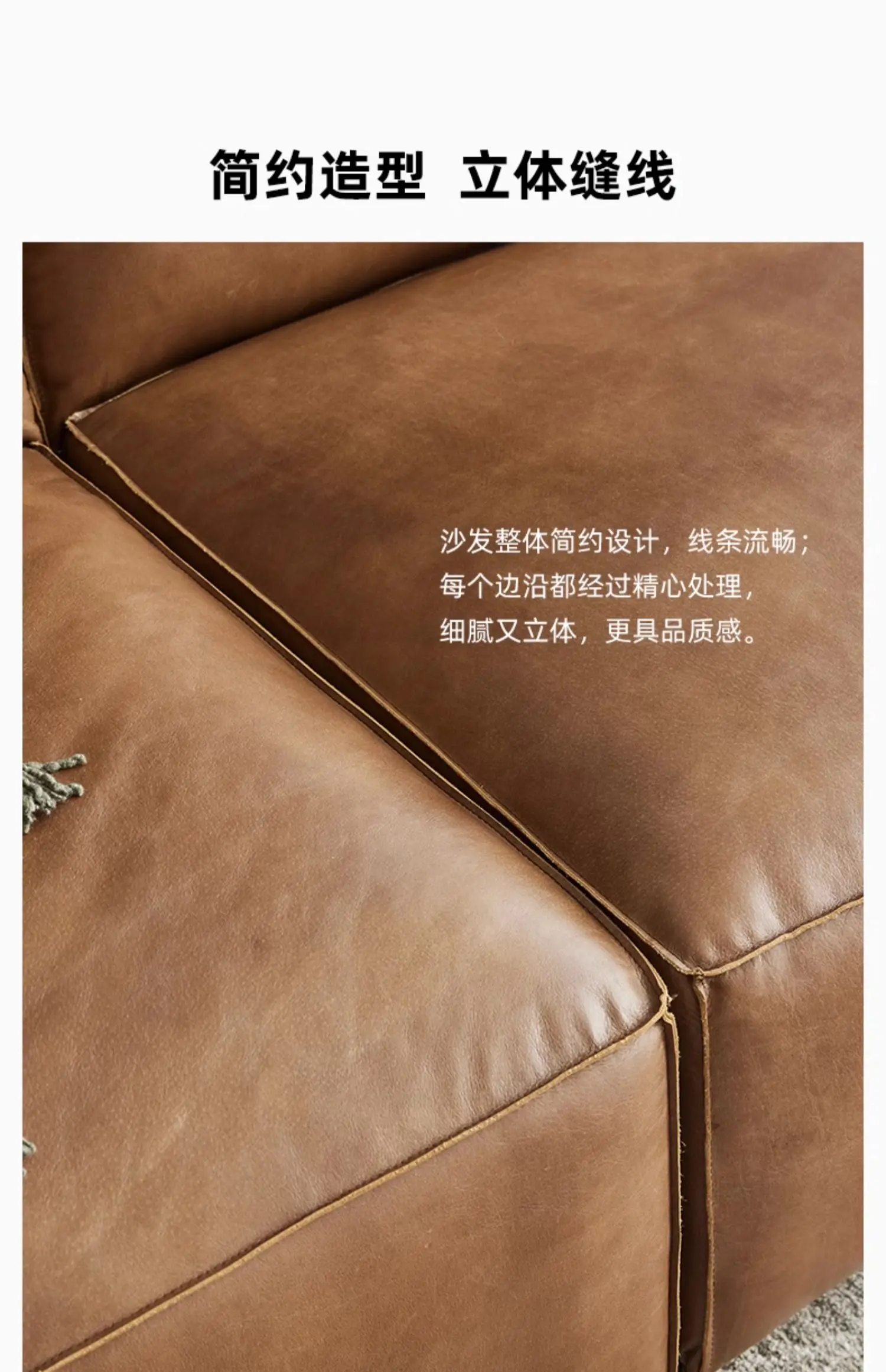 Luxury Italian minimalist leather sofa, living room, leather art, three person seat, top layer cowhide, Yunyu Damascus leather