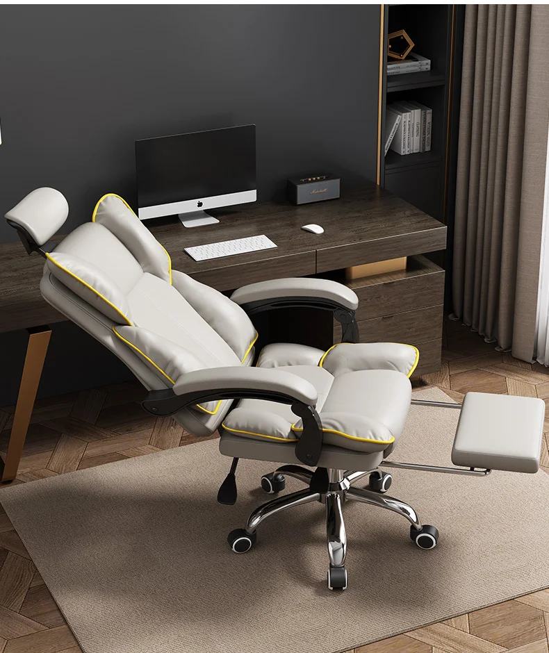 Luxury Leather Office Chair Footrest Back Cushion Wheels Mobile Recliner Chair Computer Study Sillas De Oficina Office Furniture