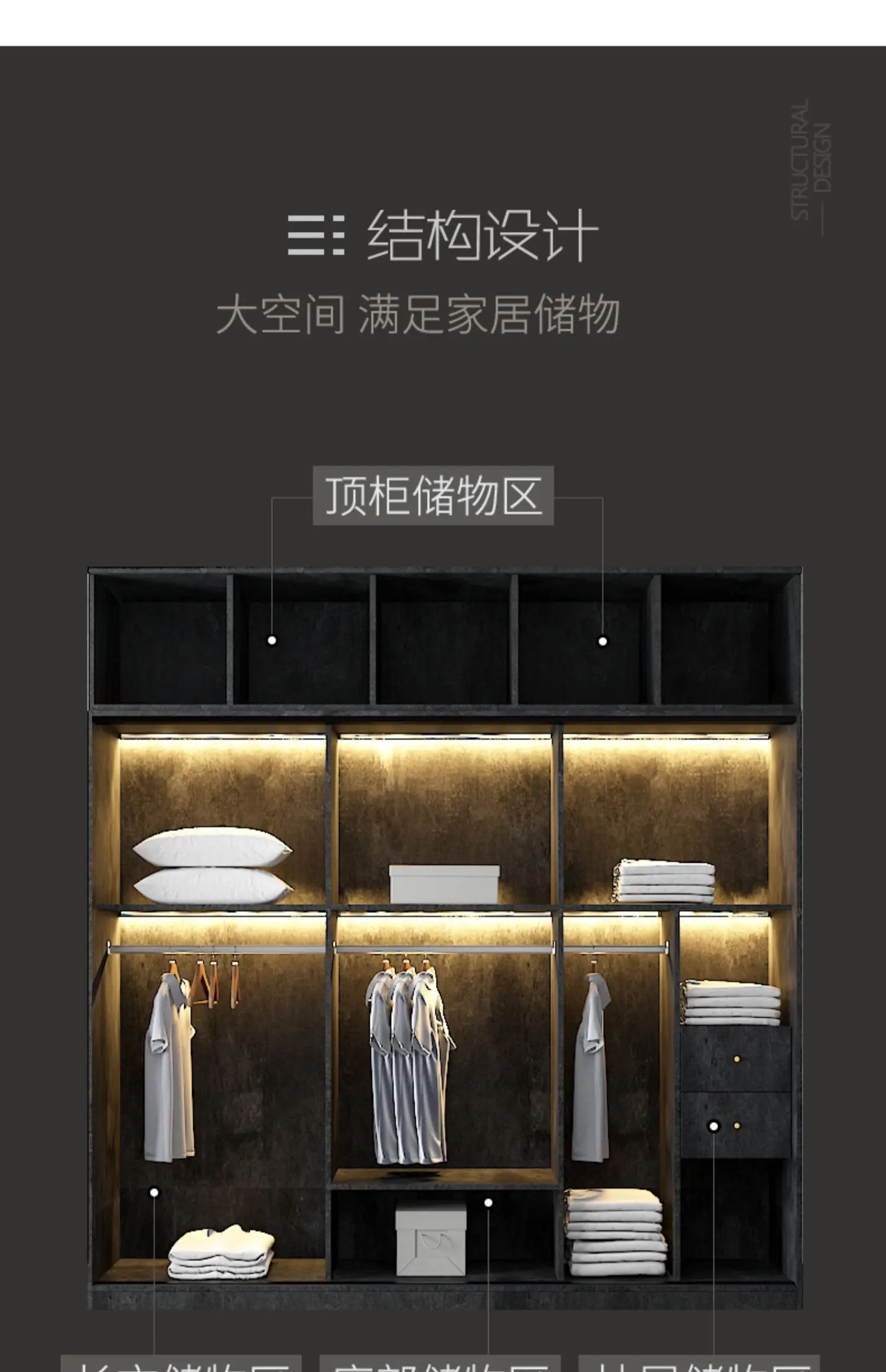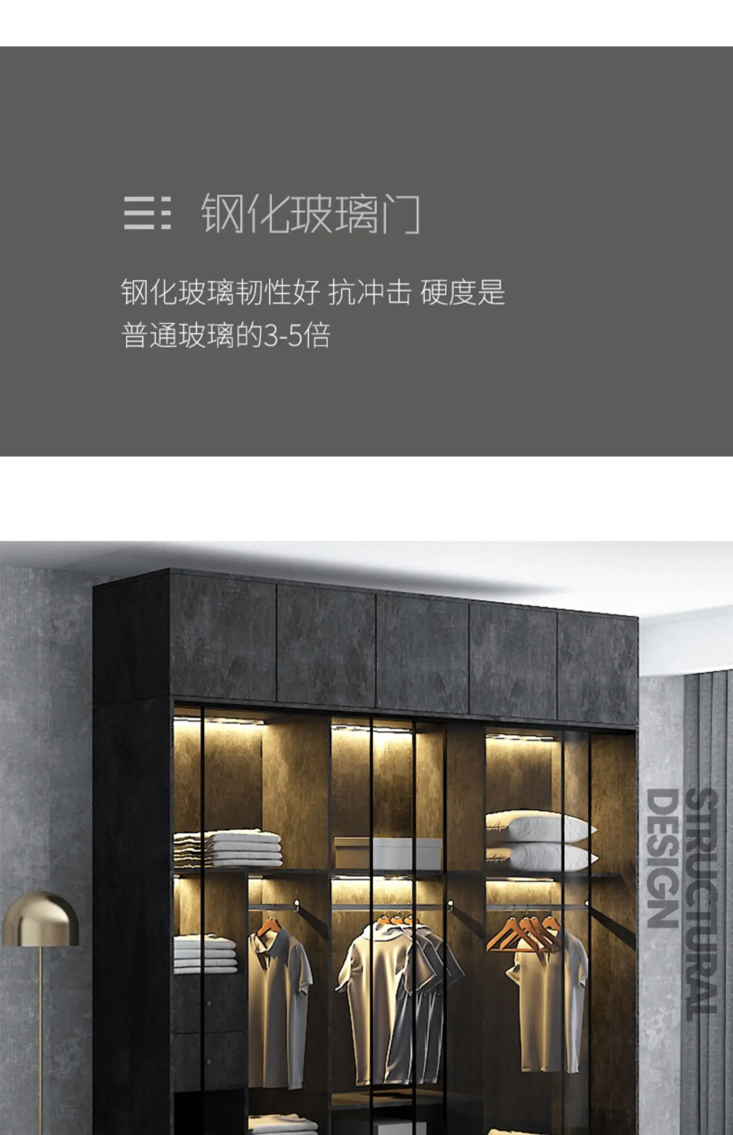 Luxury Minimal Glass Door Wardrobe Sensor Light Sliding Door Bedroom Modern Simple Sliding Door Integrated Wardrobe