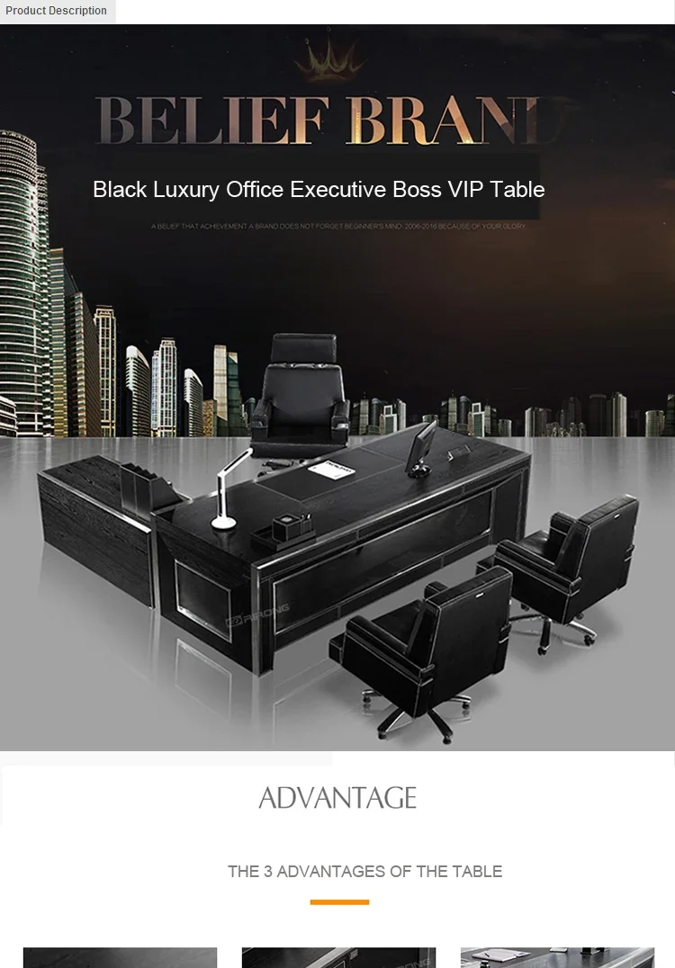 Luxury Modern Design 24cm Boss Director Furniture Black Wood Vip Room White Office Executive Table Manager Desk With Drawer