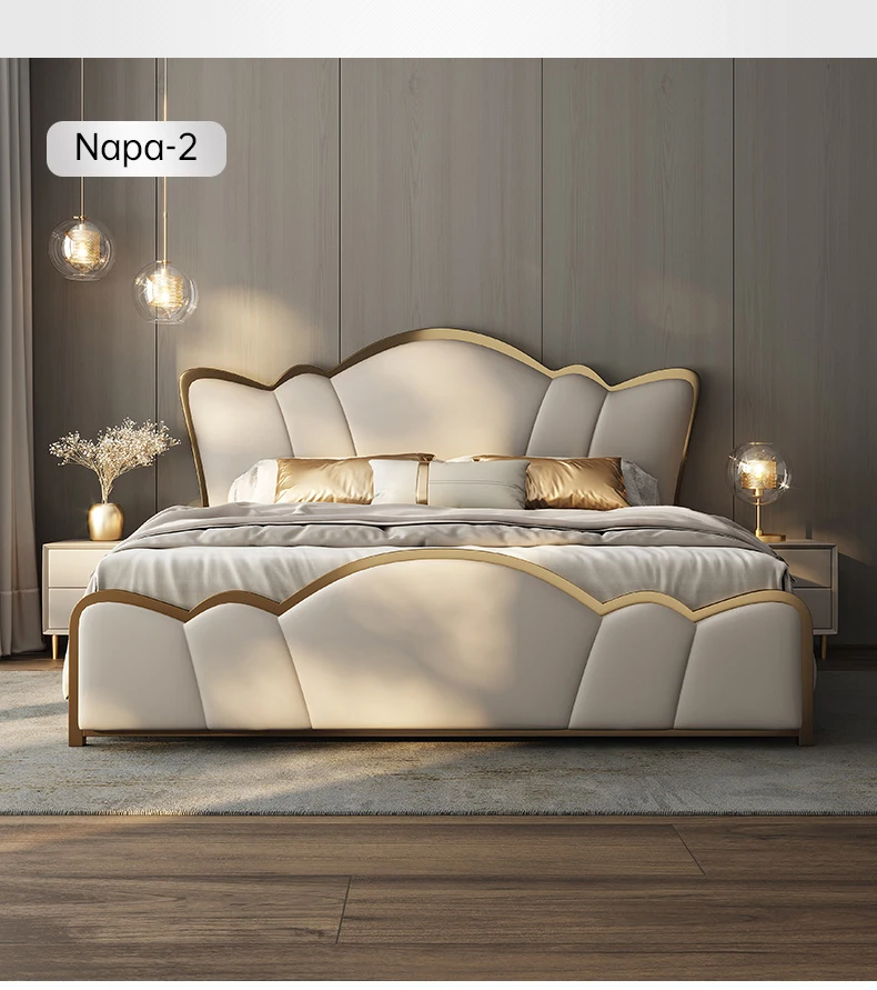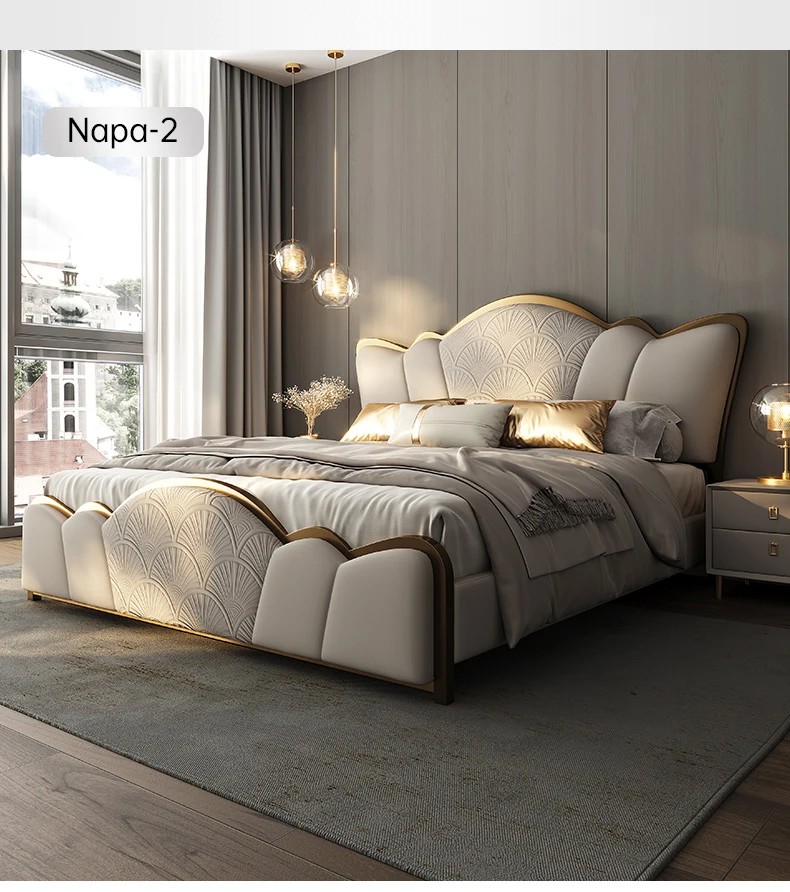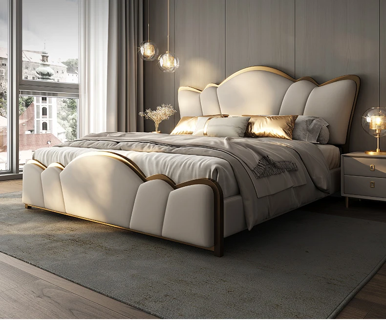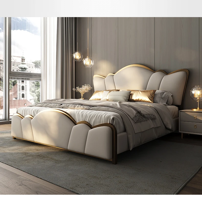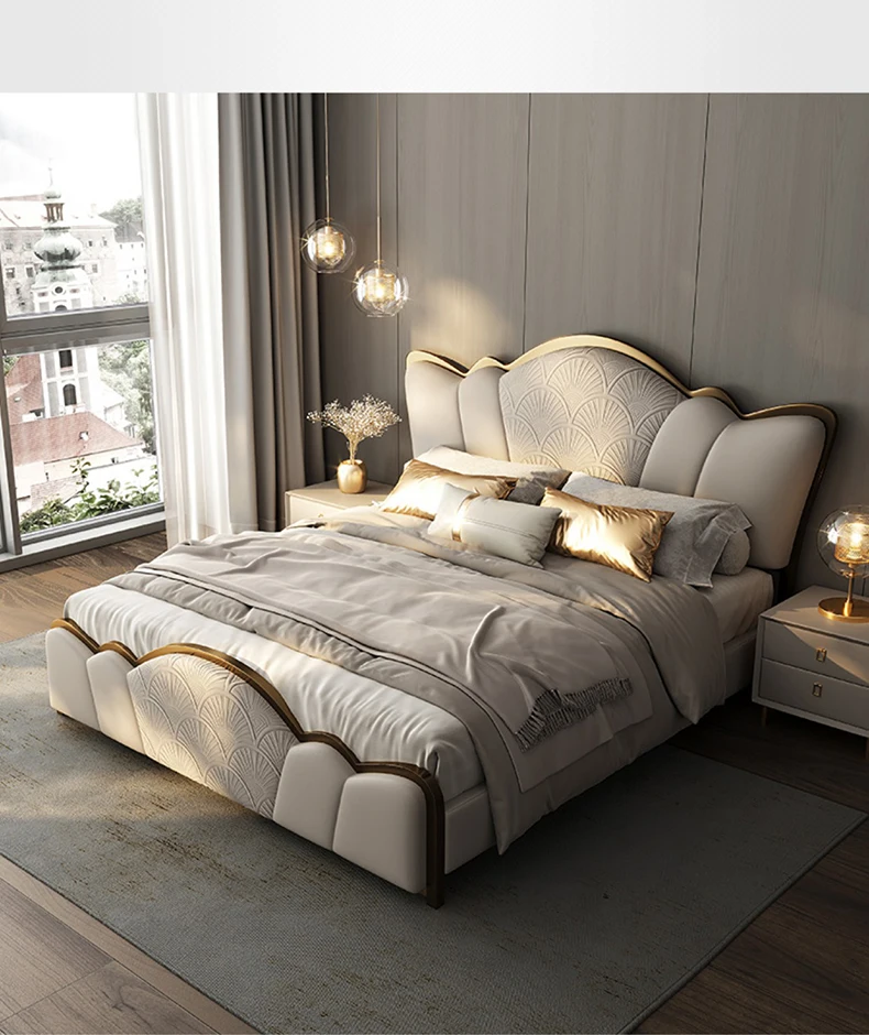 Luxury Modern Leather Bed Set Headboard Home Furniture Bedroom Set Designer King/Queen/Full Size Bed Lit 2 Personnes Apartment