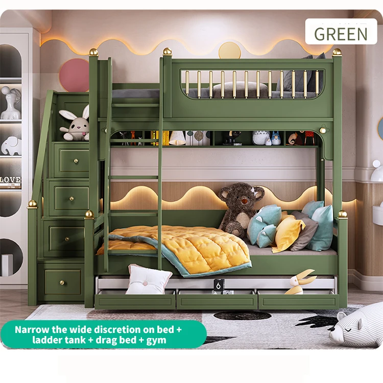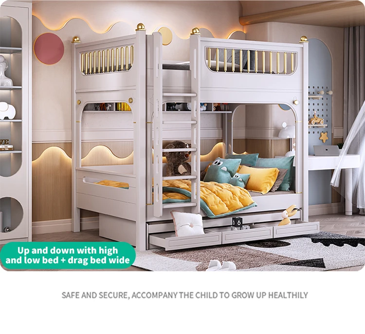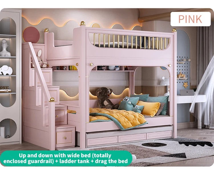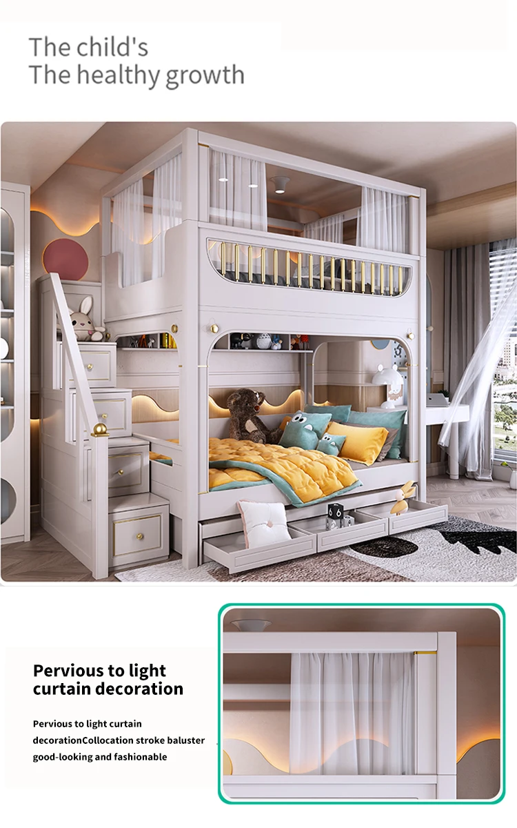 Luxury Multifunctional Kids Bunk Bed with Safety Fence For 5 To 8 Yeas Old Children Bedroom Furniture Large Storage Bed for Kids
