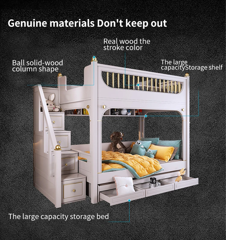 Luxury Multifunctional Kid Bunk Bed With Safety Fence For 5 To 8 Yeas Old Children Bedroom Furniture Large Storage Bed For Kids